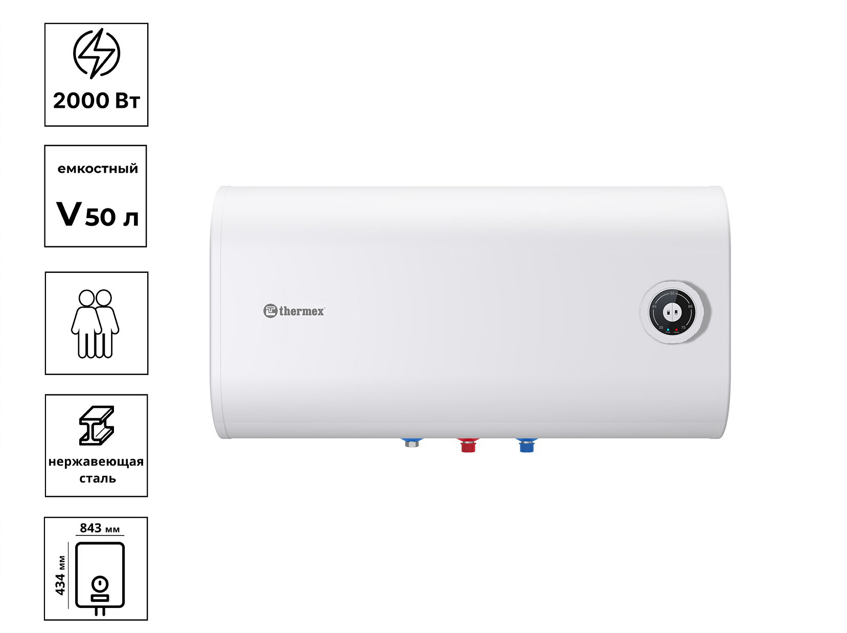 Эл.водонагреватель 50л. гориз., нерж., плоск., THERMEX MK 50 H