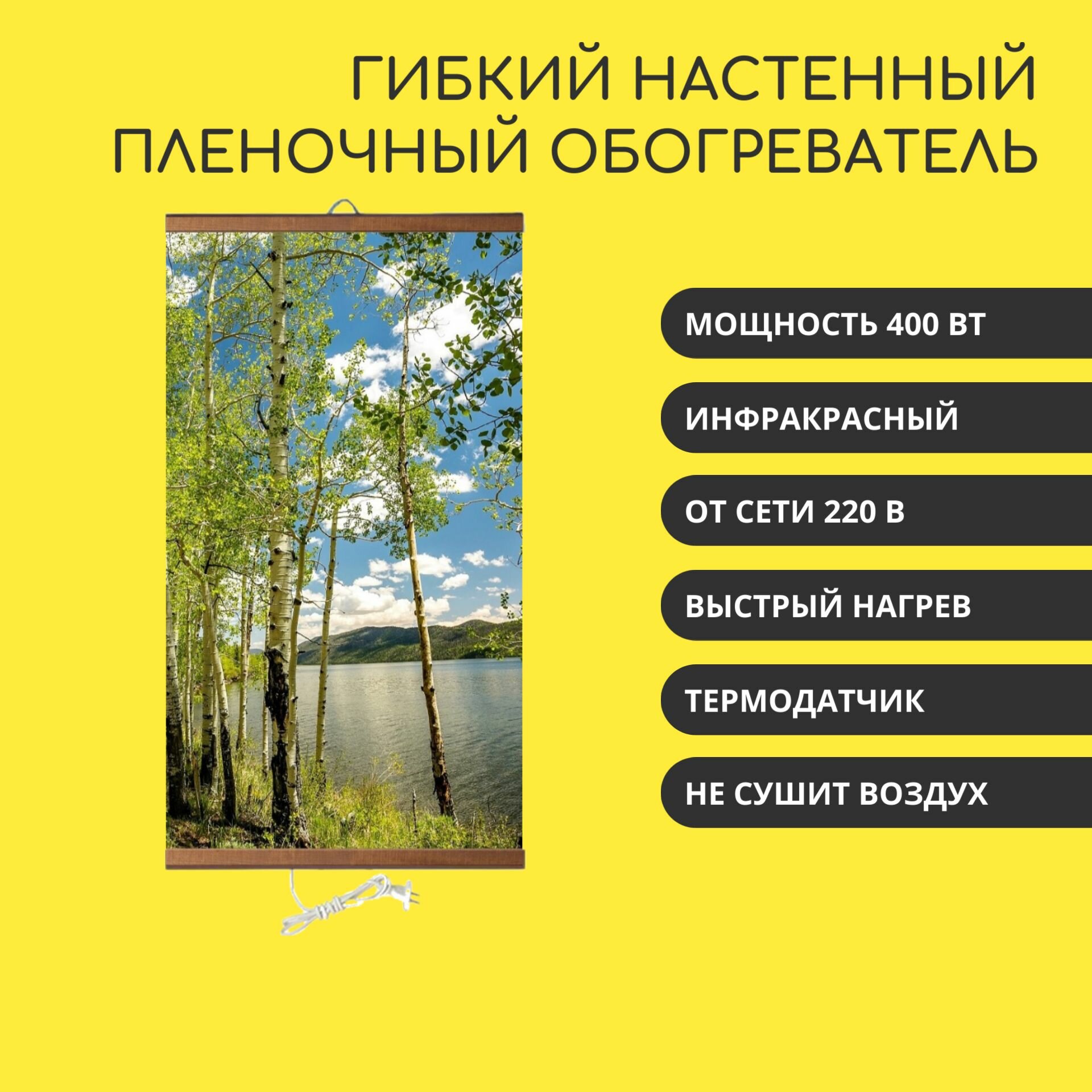 СохранитьГибкий настенный инфракрасный пленочный обогреватель для помещений "Березки" 60х105 см интересное: