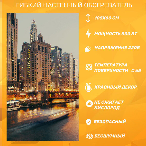 Электрический доброе тепло обогреватель гибкий настенный инфракрасный, рисунок Ночной город, 500Вт