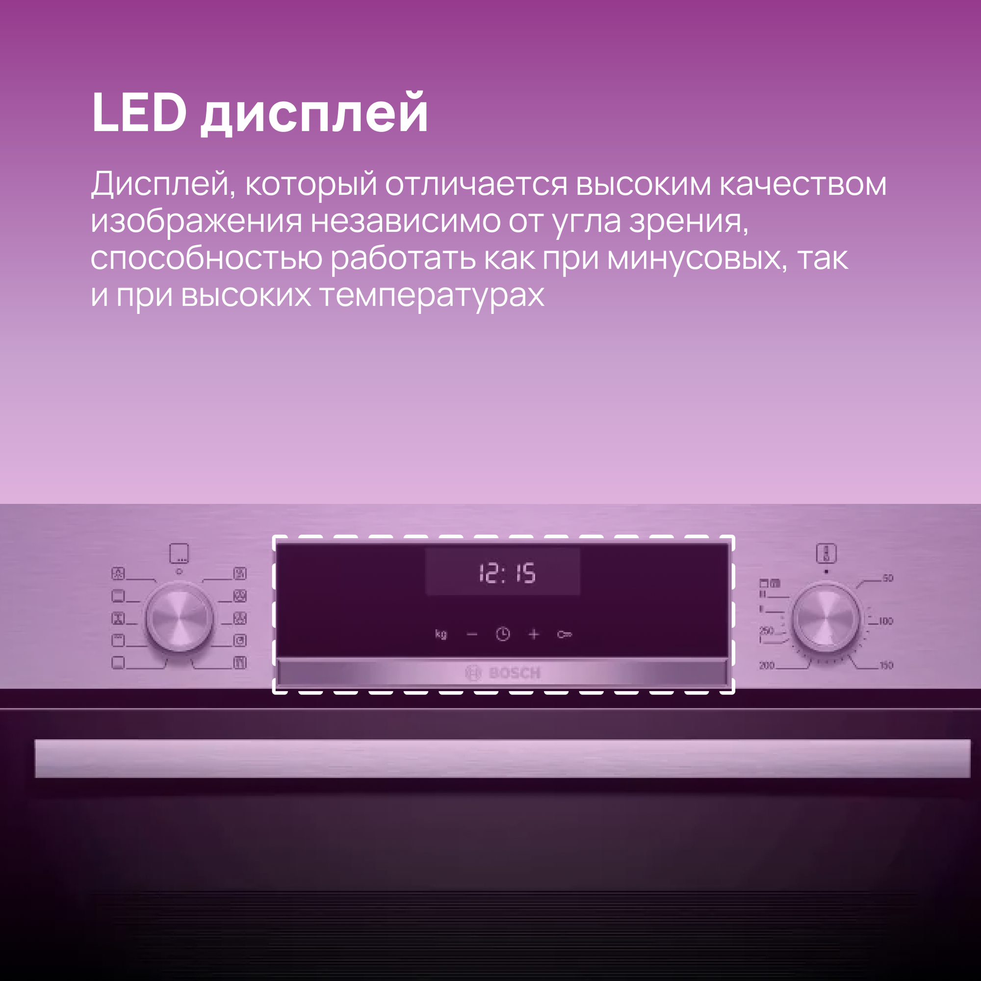 Духовой шкаф Bosch HBG517EB0R, Serie 6, 71 литр, дисплей, гриль, конвекция, эмаль легкой очистки, черный