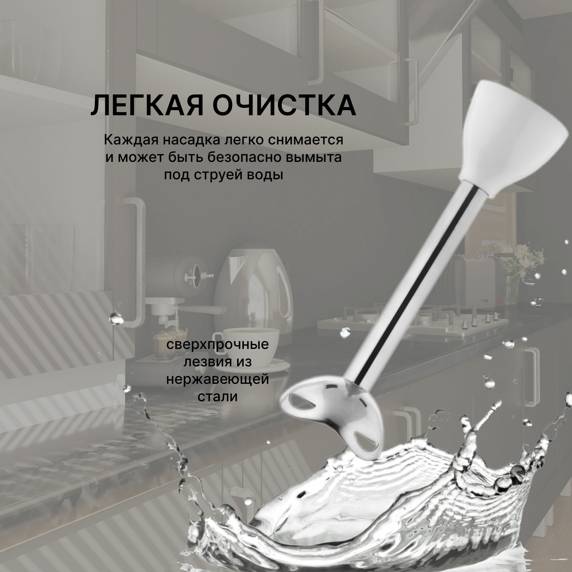 Блендер погружной BRAYER BR1242, 800 Вт, белый, нержавеющая сталь
