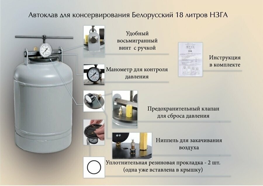 Автоклав (производство Беларусь, оригинал) для консервирования (домашних заготовок) 18л, НЗГА интересное: