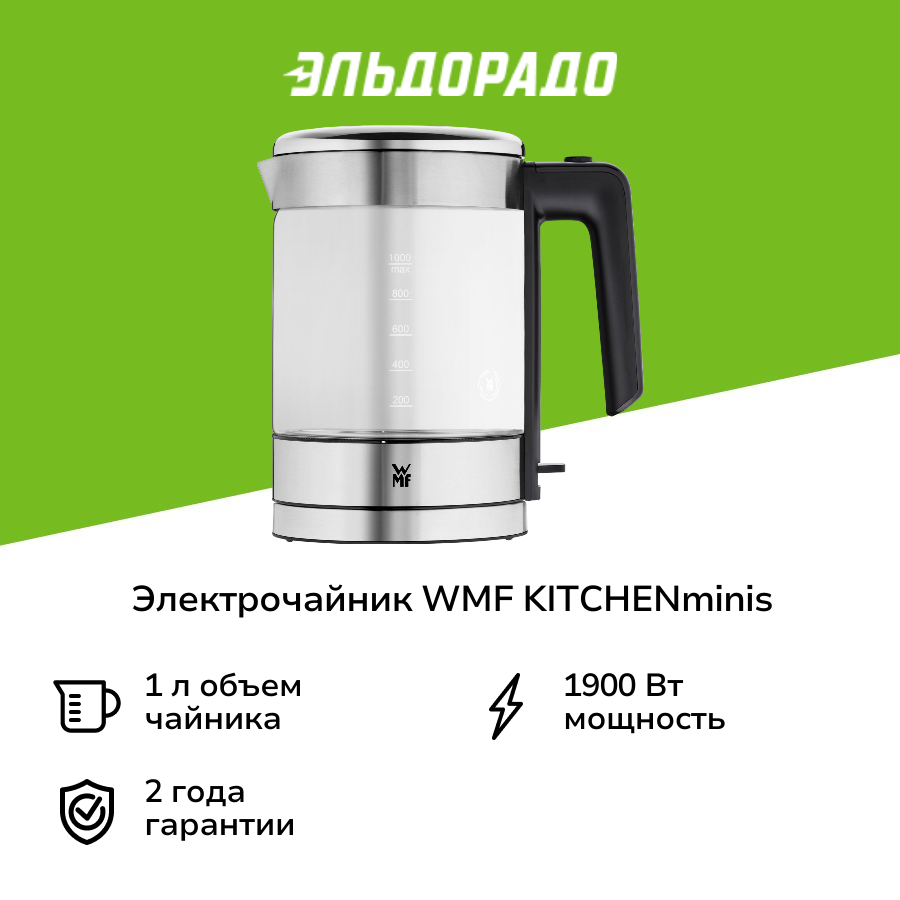 Стеклянный чайник WMF Kichenminis Vario с регулировкой температуры, 1 л, 1900 Вт