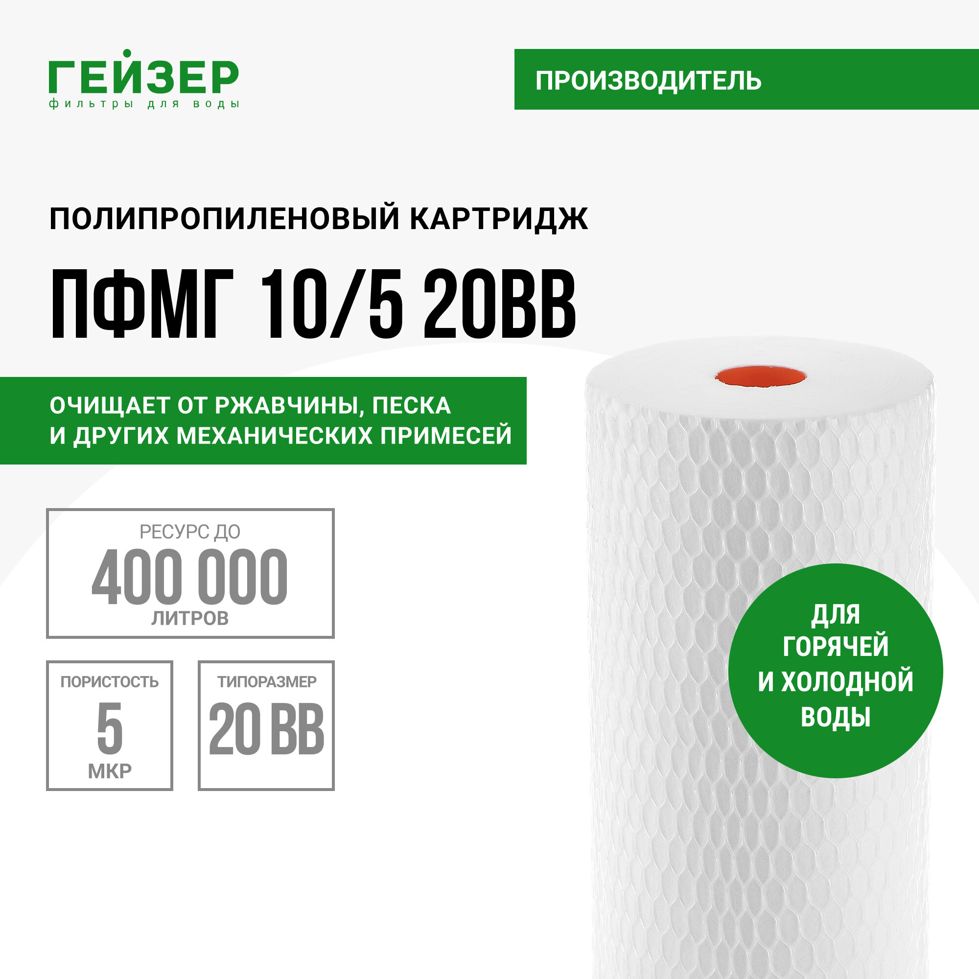 Картридж мех. очистки Гейзер пфмг 10/5-20BB, хол. и гор. вода, полипропилен, 10-5 мкм Гейзер