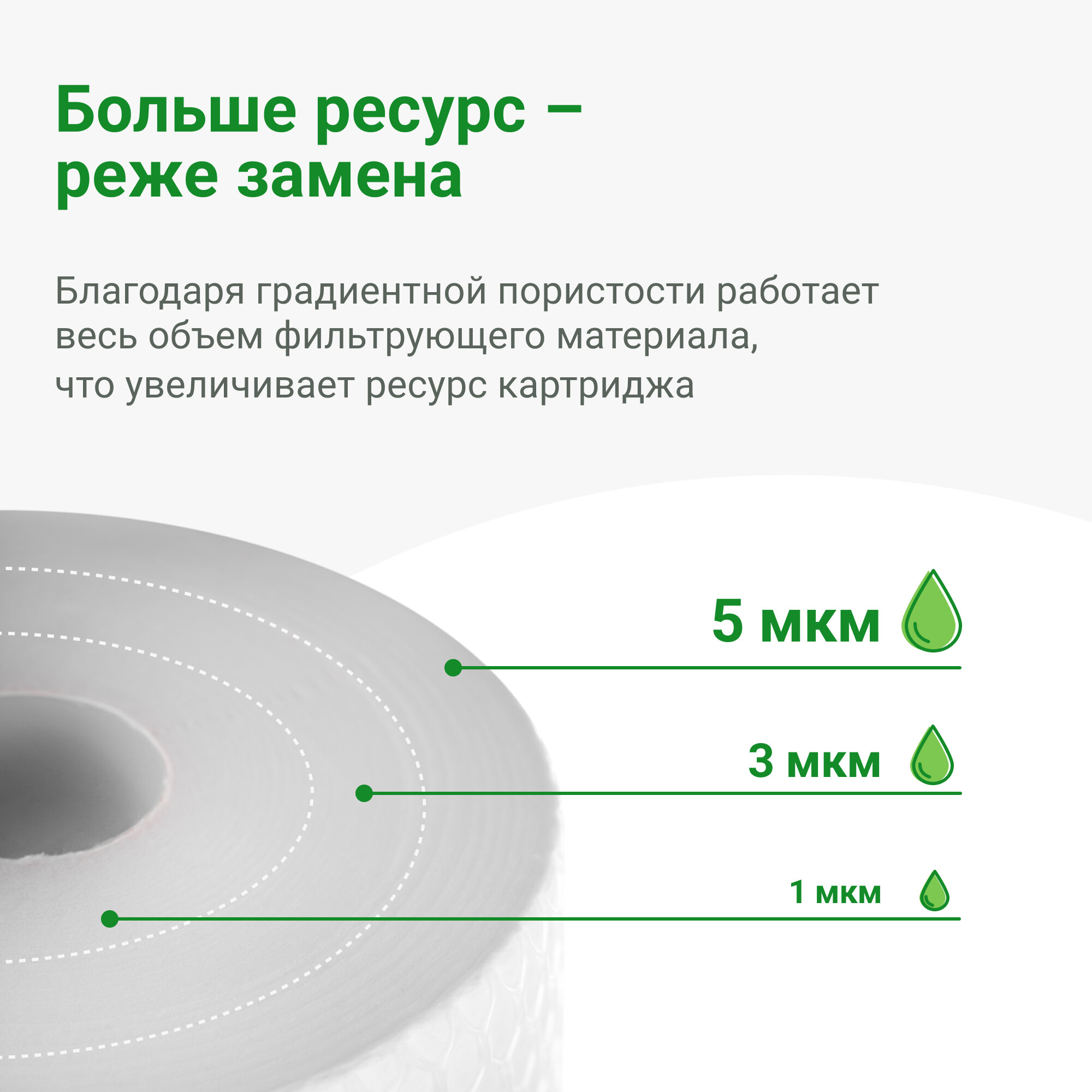 | Плюсы: | пользуюсь этими картриджами много лет. у меня это третья ступень очистки. в исходной воде много глиняной взвеси. система из трех картриджей справляется хорошо. картриджа хватает ровно на то количество кубометров, которое на нем указано, потом начинает пропускать глиняную смесь. |
