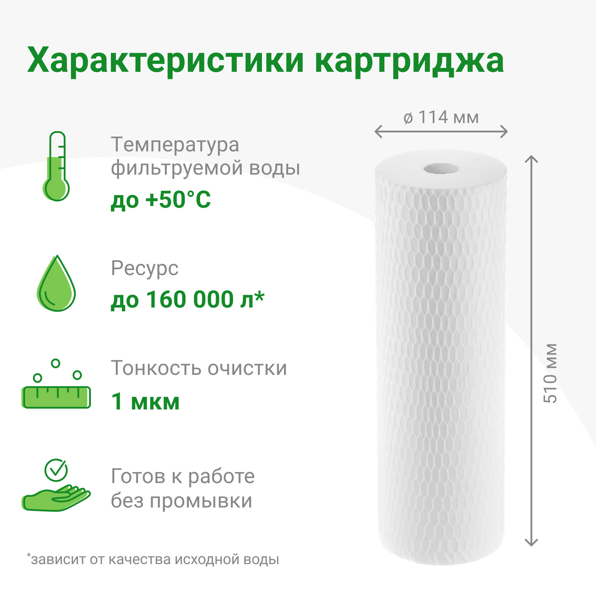 Купить Картридж механический Гейзер ПФМ 5/1 20BB, эффективная очистка воды от механических примесей, 28226