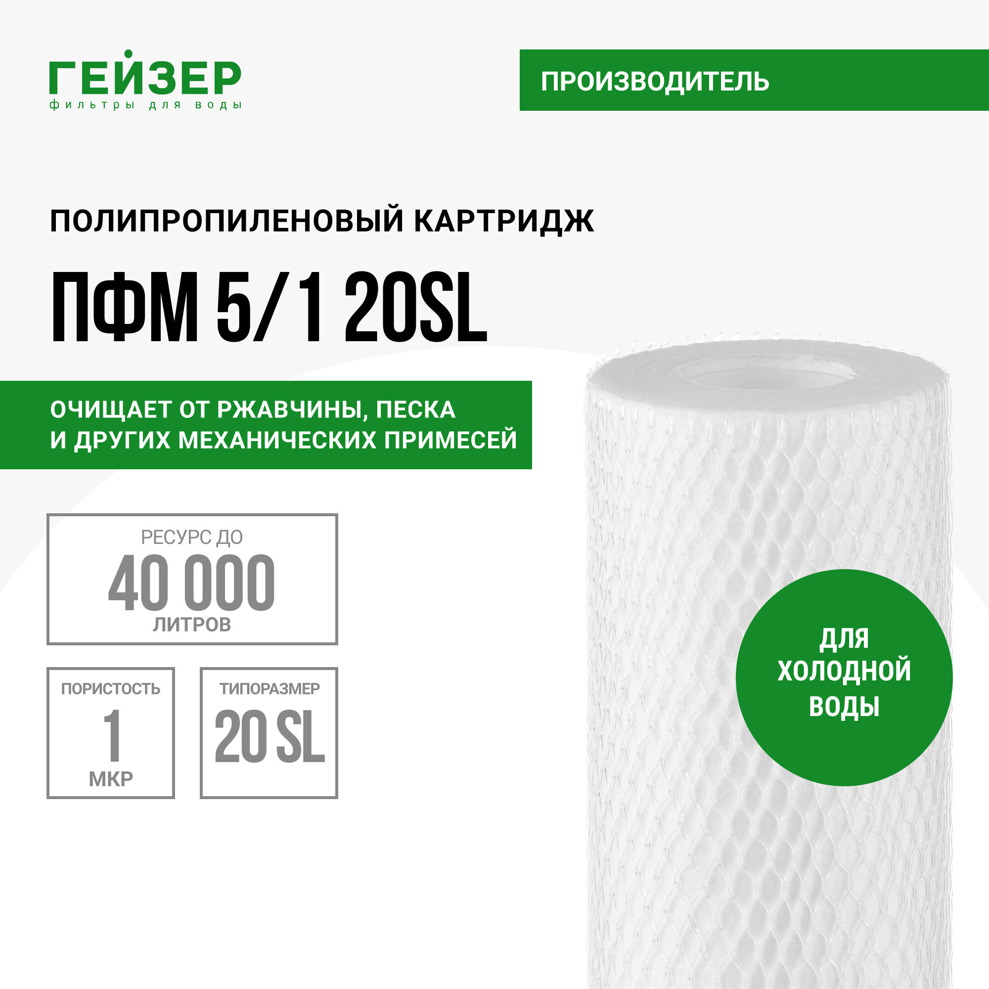 ГЕЙЗЕР ПФМ 20SL- 5/1мкм Картридж для холодной воды, арт.28218