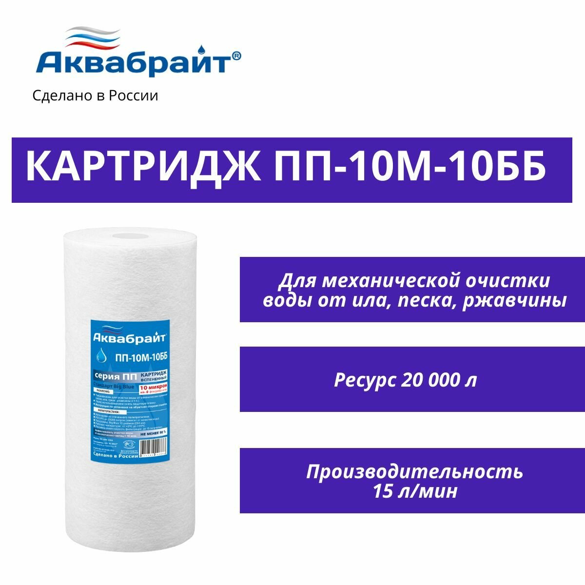 ПП-10М-10ББ Аквабрайт, полипропиленовый картридж механической очистки воды, Big Blue 10 (10bb)