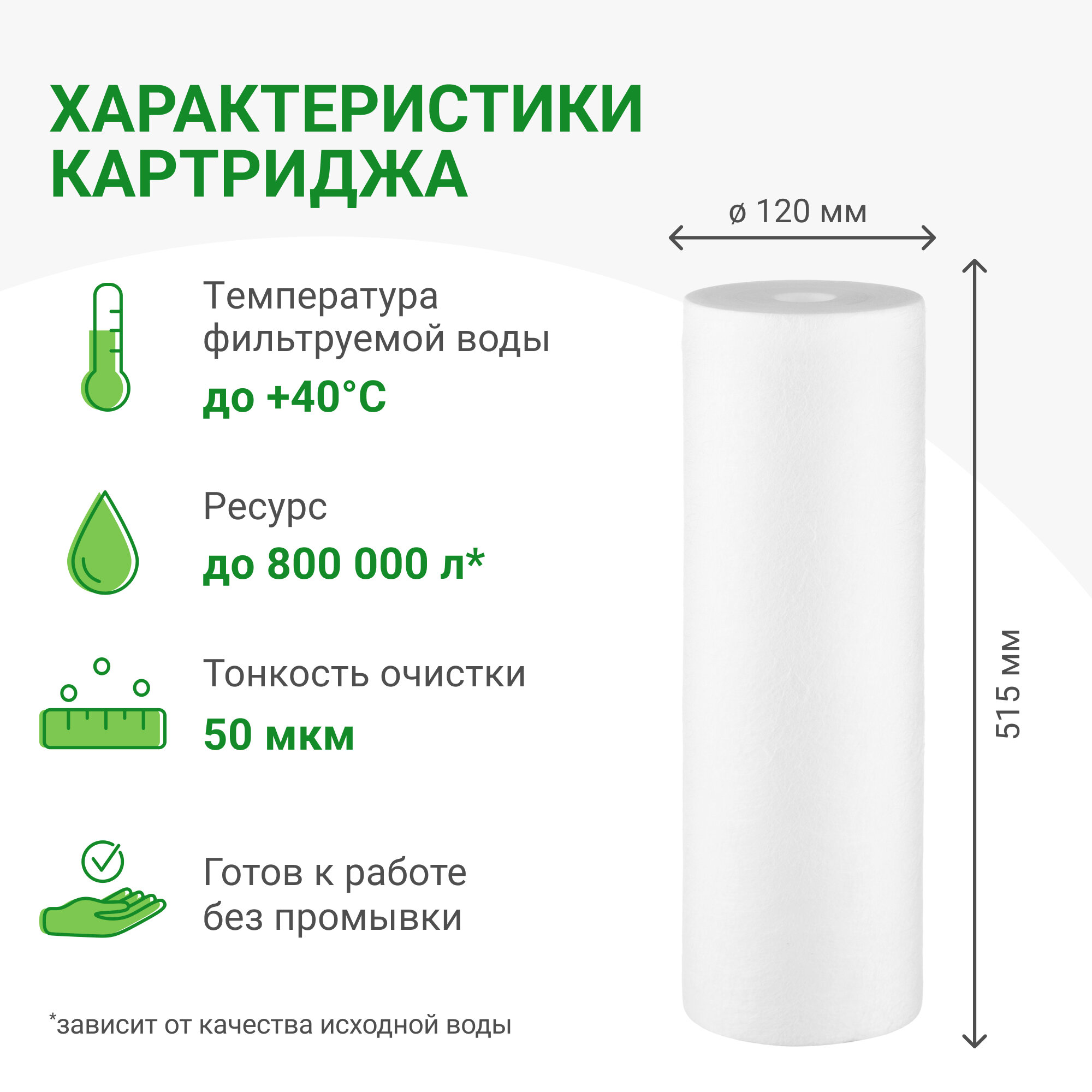 | Ресурс фильтрующего элемента | 800000 л |