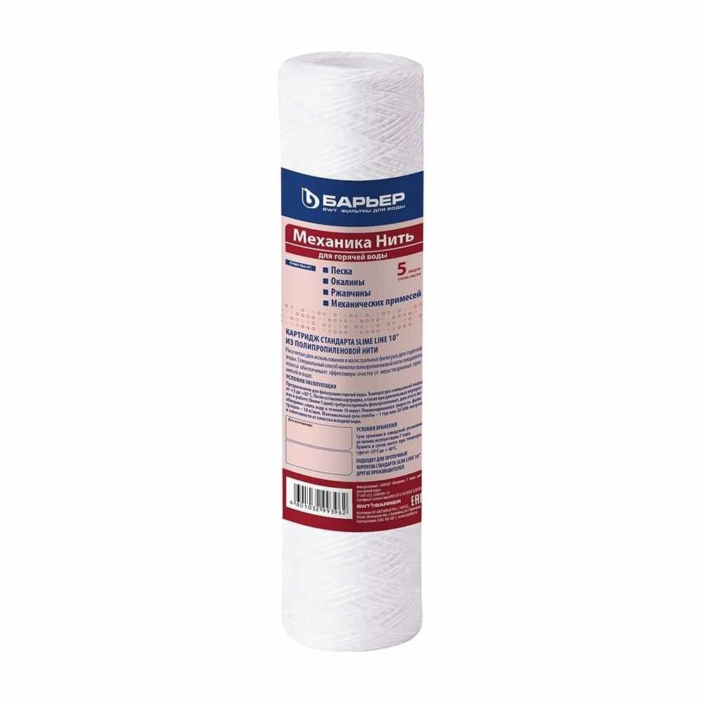 Сменный картридж для магистрального фильтра барьер Механика 5 мкм нить для горячей воды Slim Line 10 (SL10)