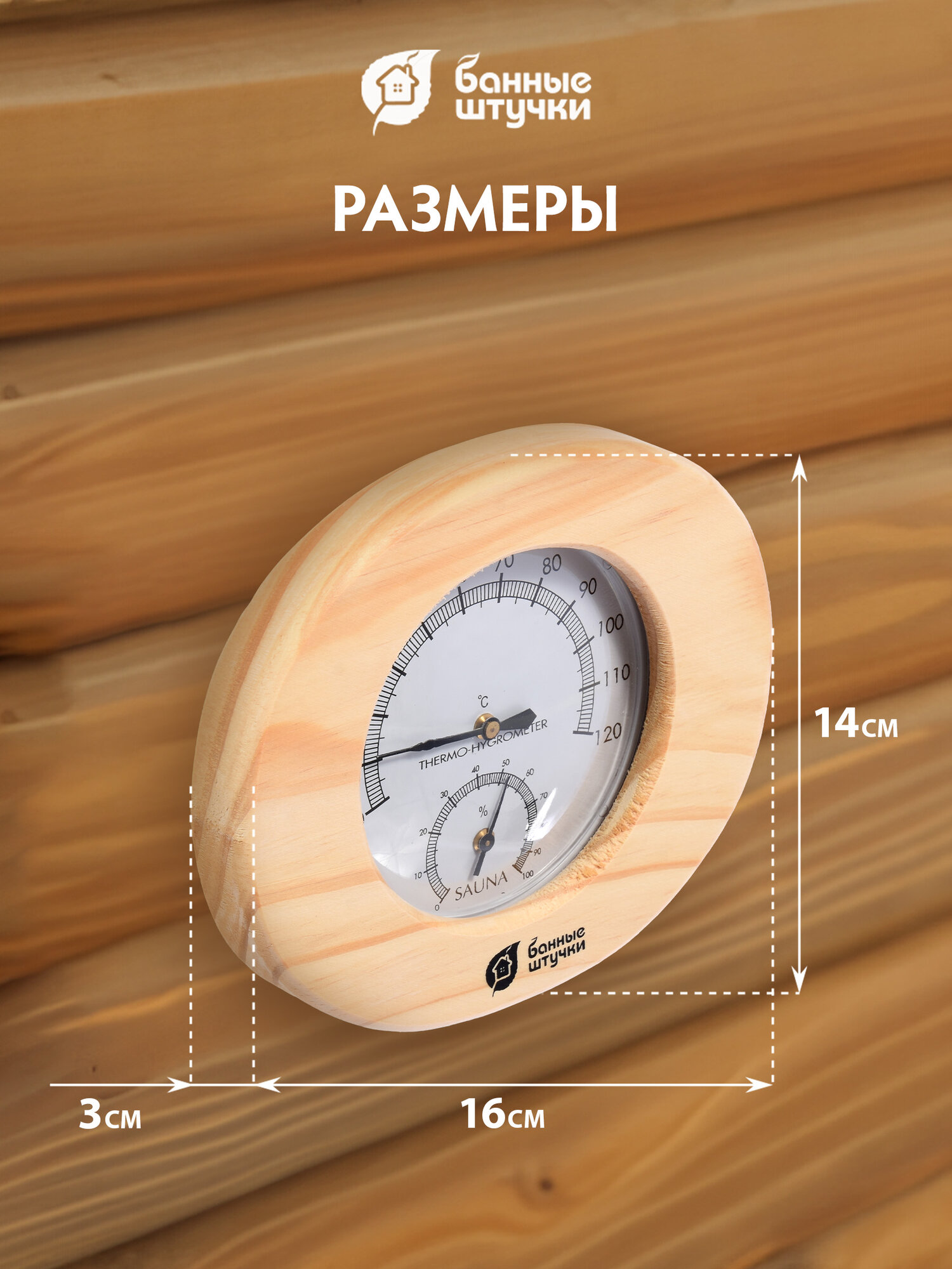 Термометр для бани и сауны с гигрометром 16х14х3 см, "Банные штучки" (18022) (банные штучки)