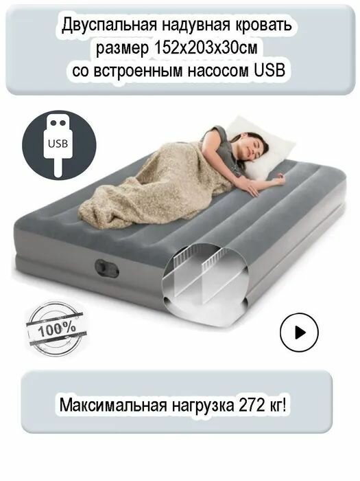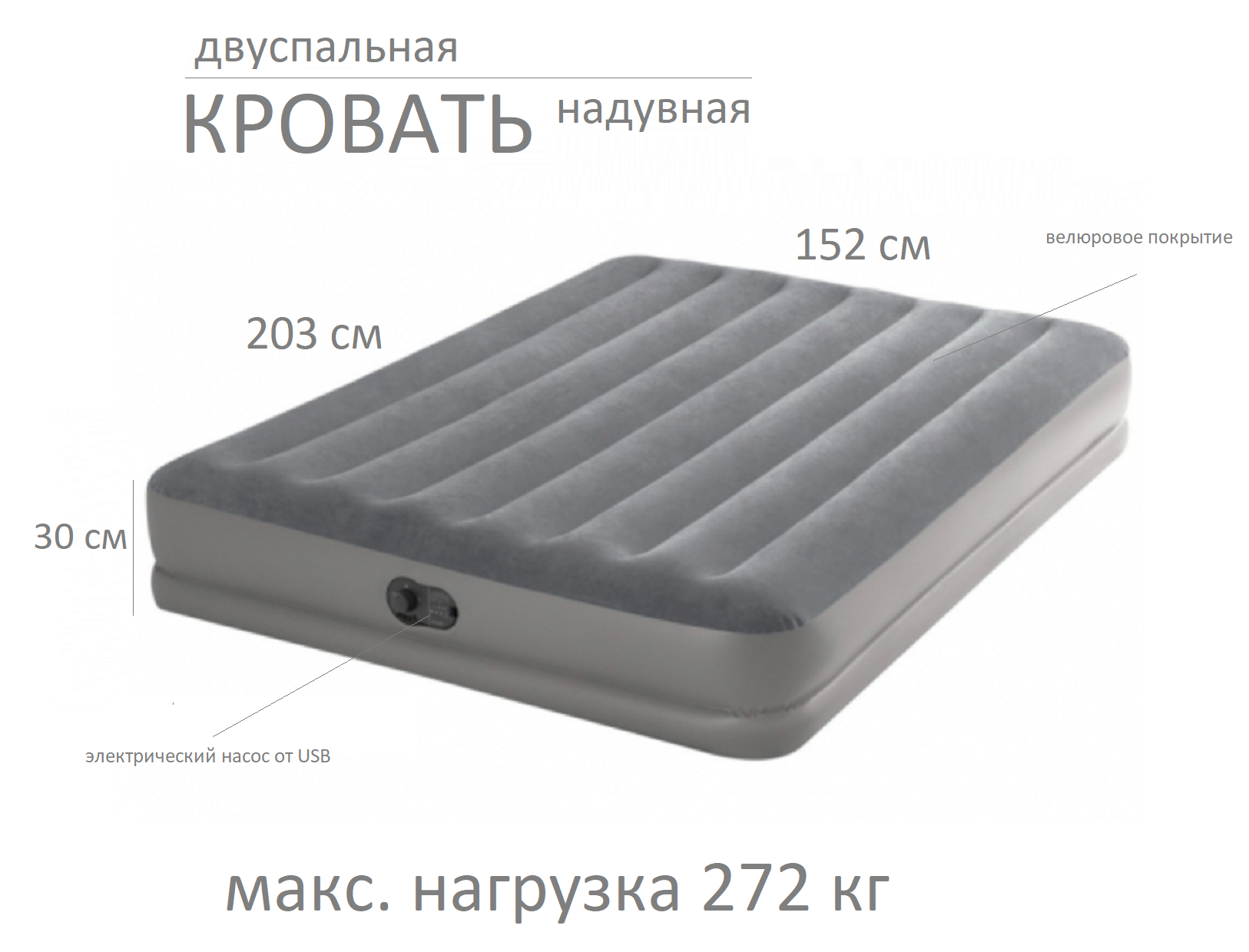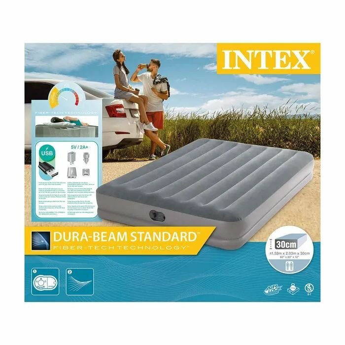 Купить Intex 64114 Матрас надувной 152х203х30см со встроенным USB насосом, до 272кг