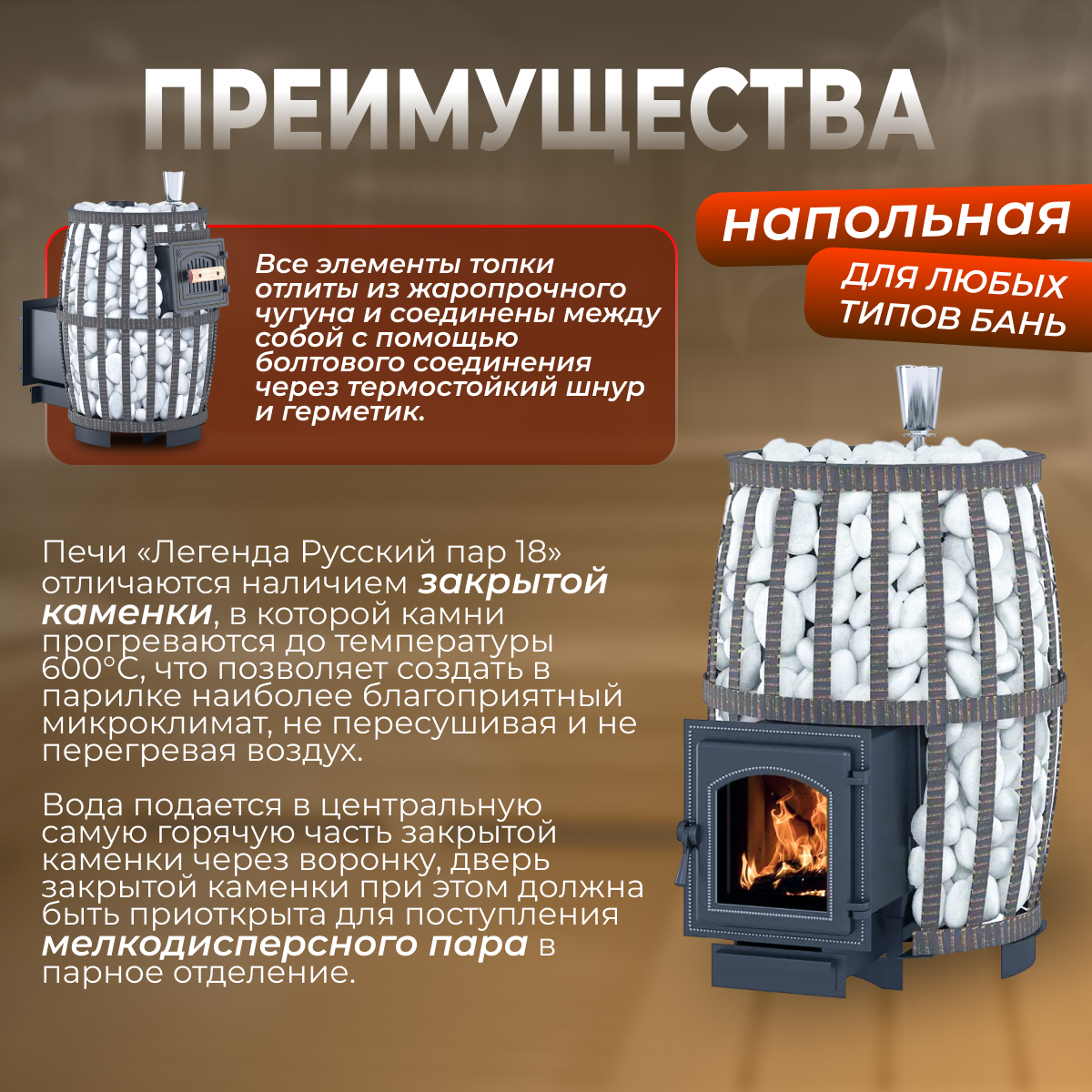 Печь для бани дровяная везувий легенда русский ПАР Ковка 18 (270) интересное: