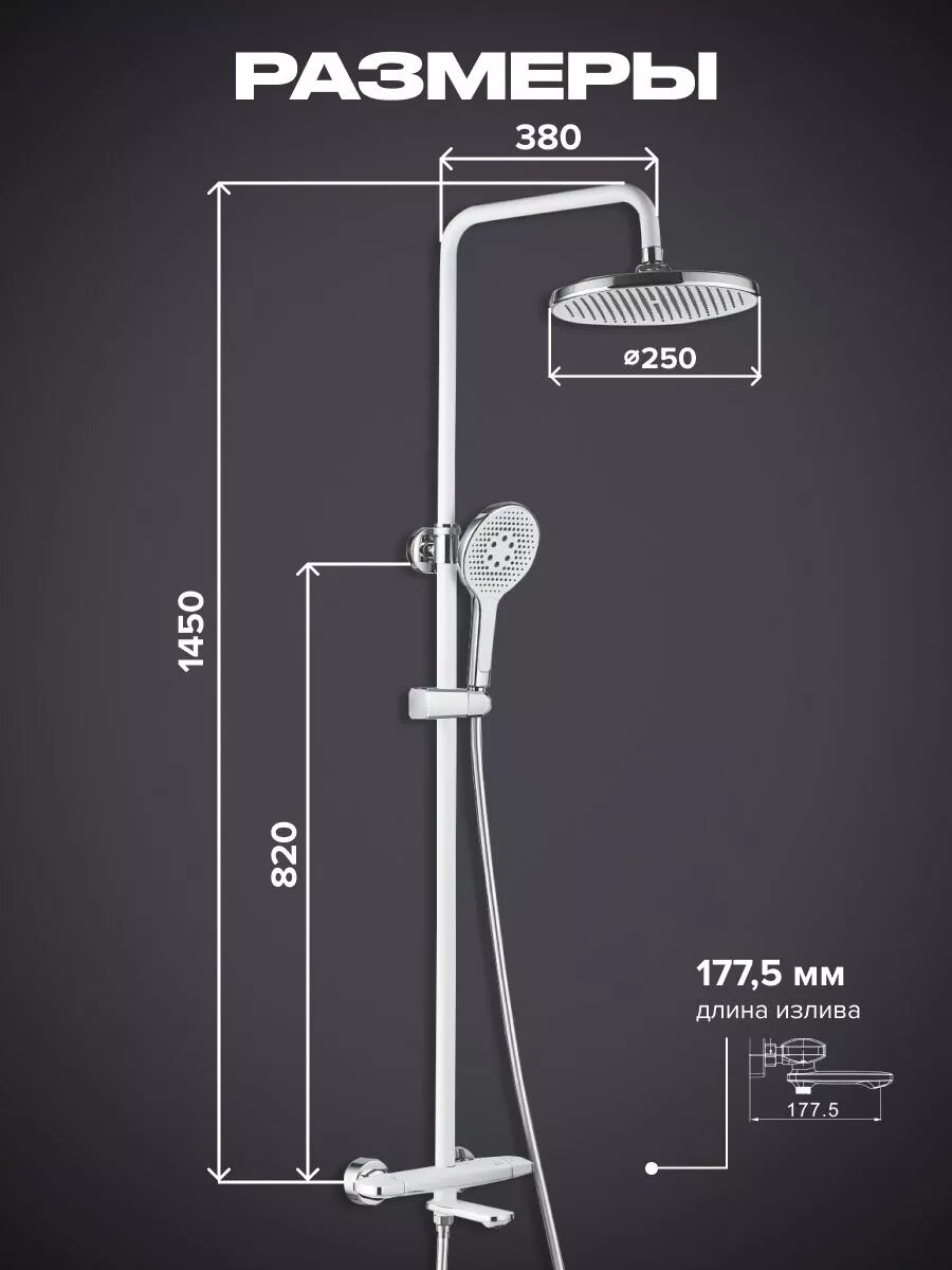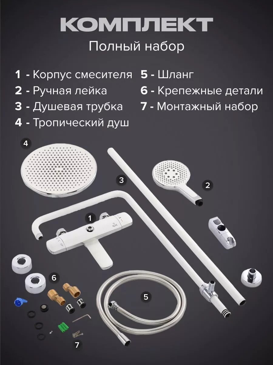 Душевая система с термостатом Rose R3996F, латунь, цвет белый/хром