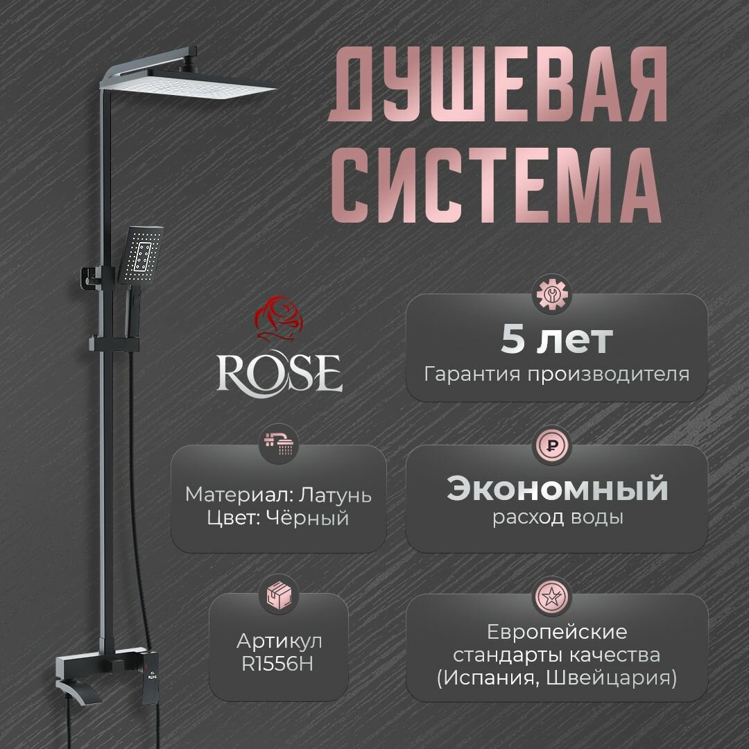 Ниже Вы можете прочитать отзывы на Душевая система Rose R1556H, латунь, цвет черный, матовый, ознакомится с подробными характеристиками, посмотреть интересные обзоры и фотографии на Душевая система Rose R1556H, латунь, цвет черный, матовый.