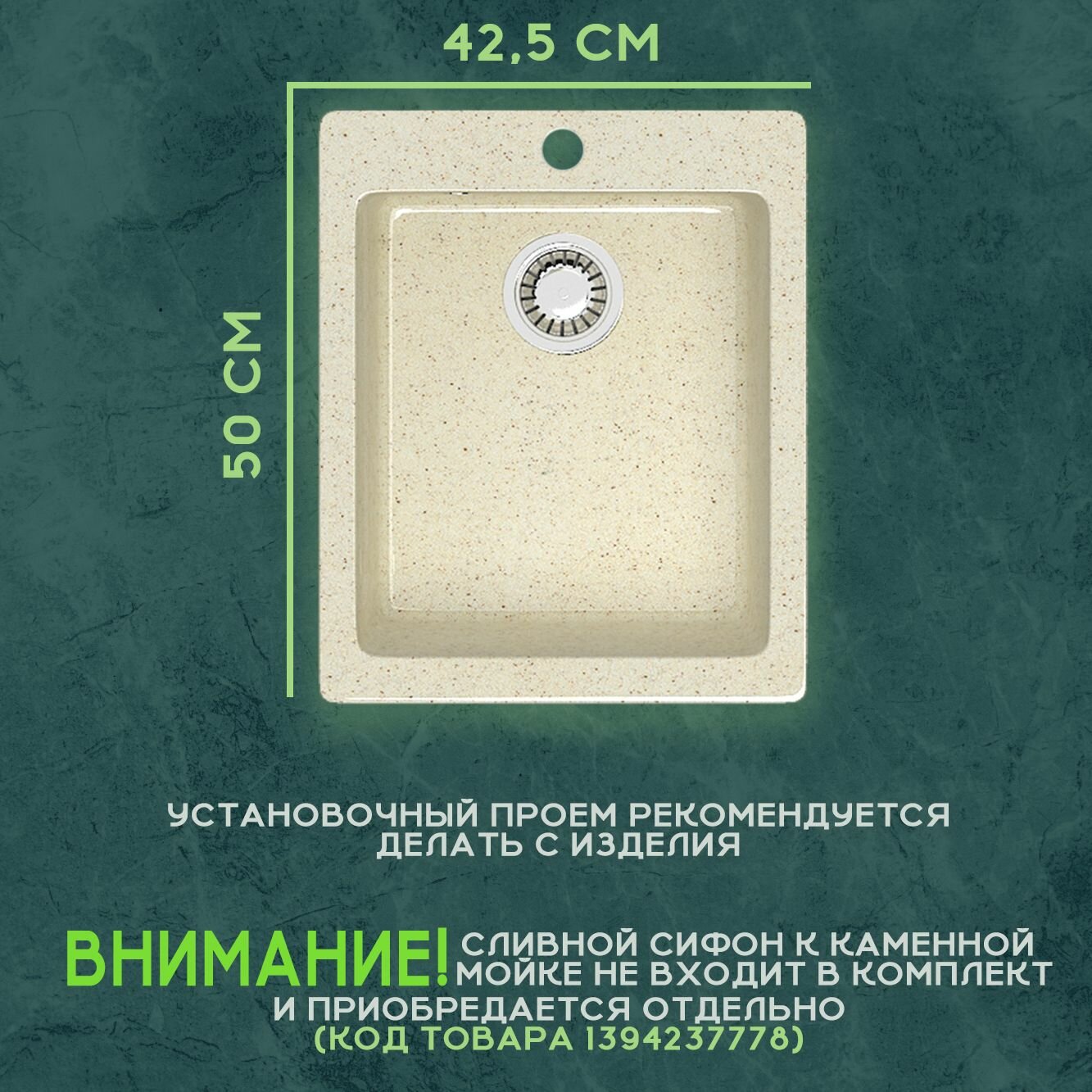Мойка кухонная из камня Линди Z8Q2, 425х500х195 мм, глянцевая, бежевый