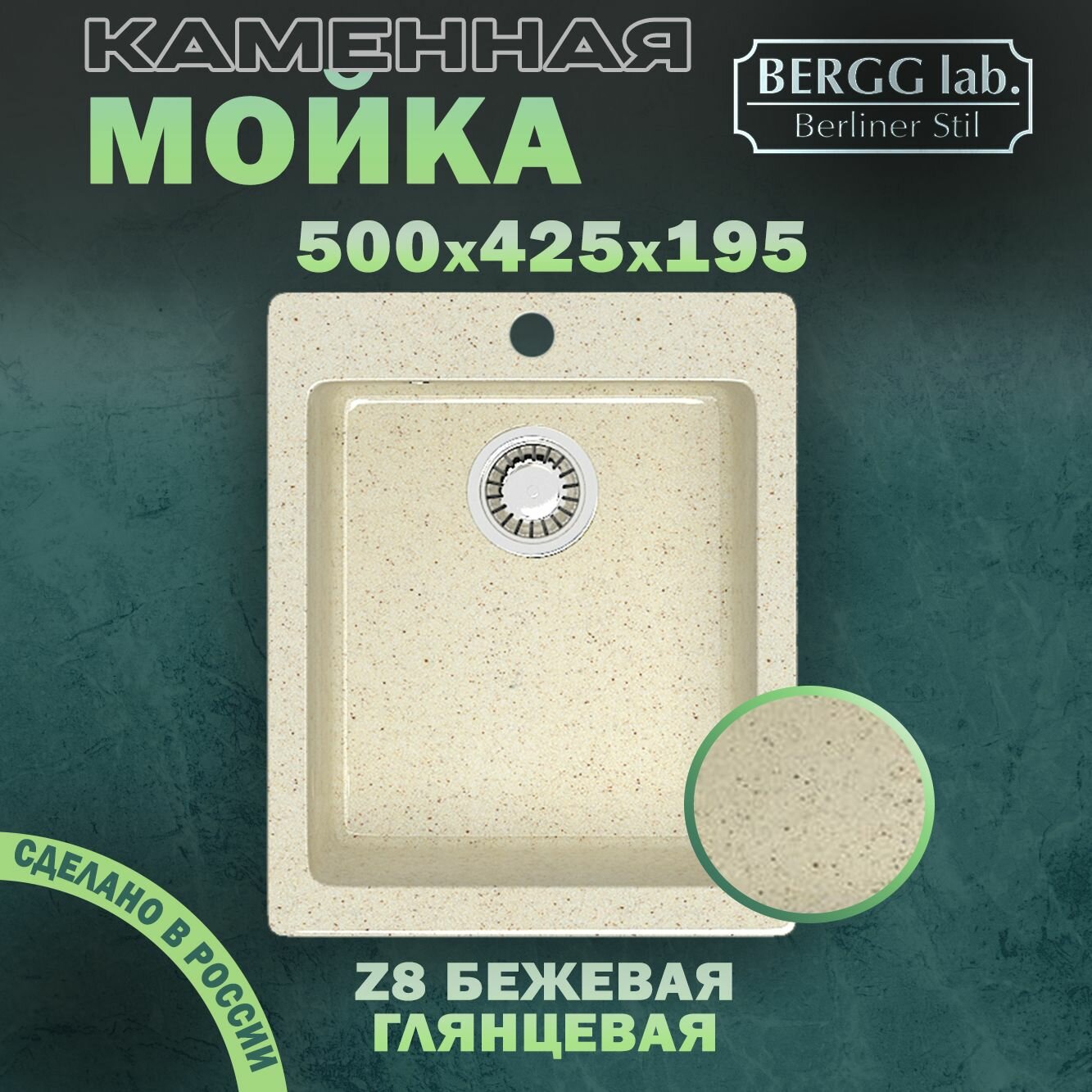 СохранитьМойка для кухни/Раковина для кухни BERGG lab., глянцевая с блестками Z8 бежевый (50х42,5х19,5 см) интересное: