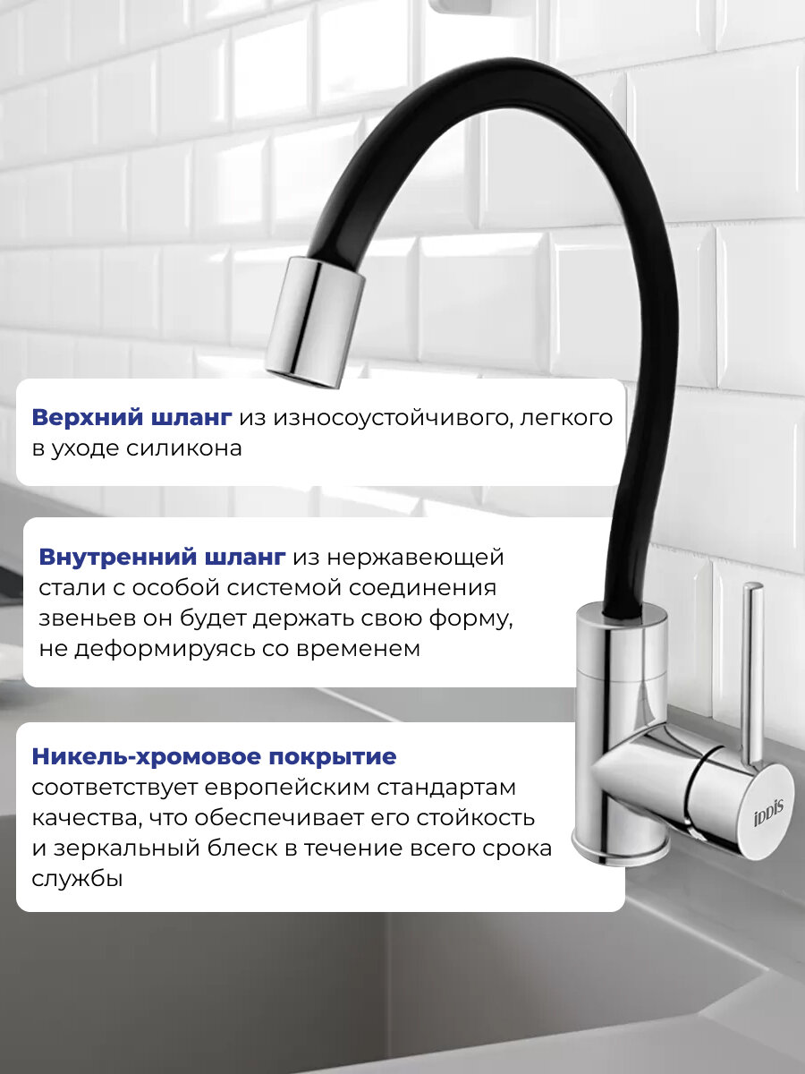 Смеситель для кухни с гибким изливом Iddis Kichen 360 K36SBJBi05 черный/хром