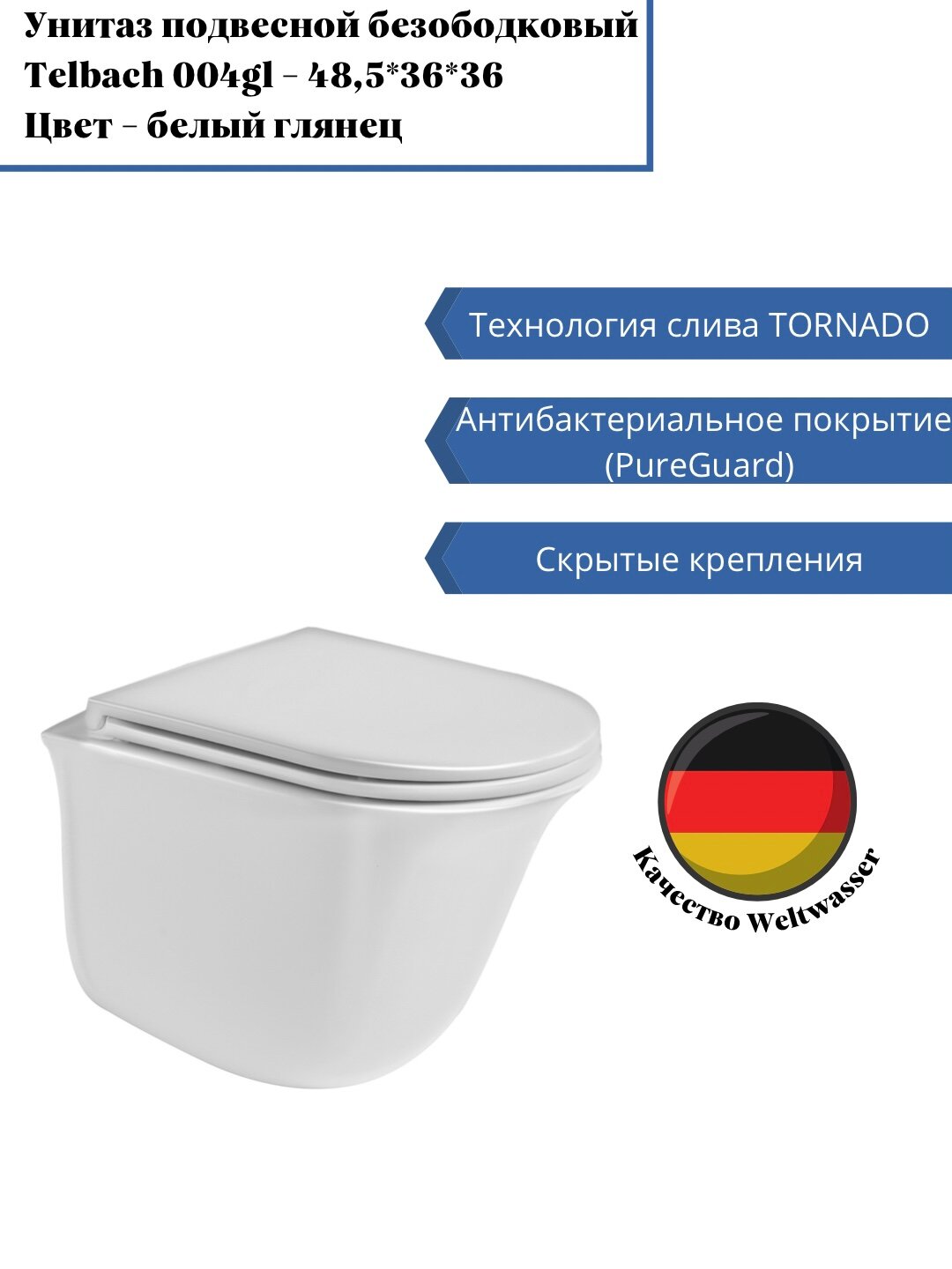 Унитаз подвесной WeltWasser 48.5x36x36 WW TELBACH 004 GL-WT 10000003668 белый глянец