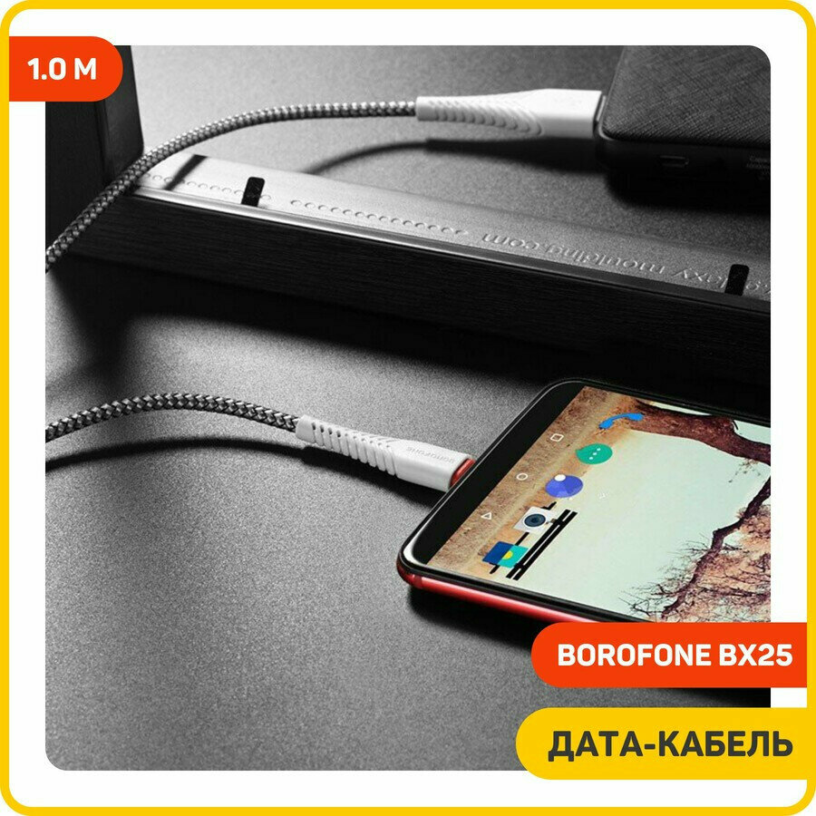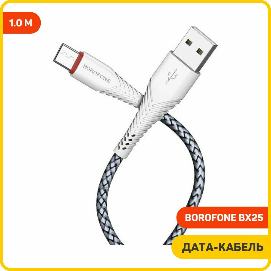 USB кабель BOROFONE BX25 Powerful Type-C, 1м, 3A, нейлон (белый)