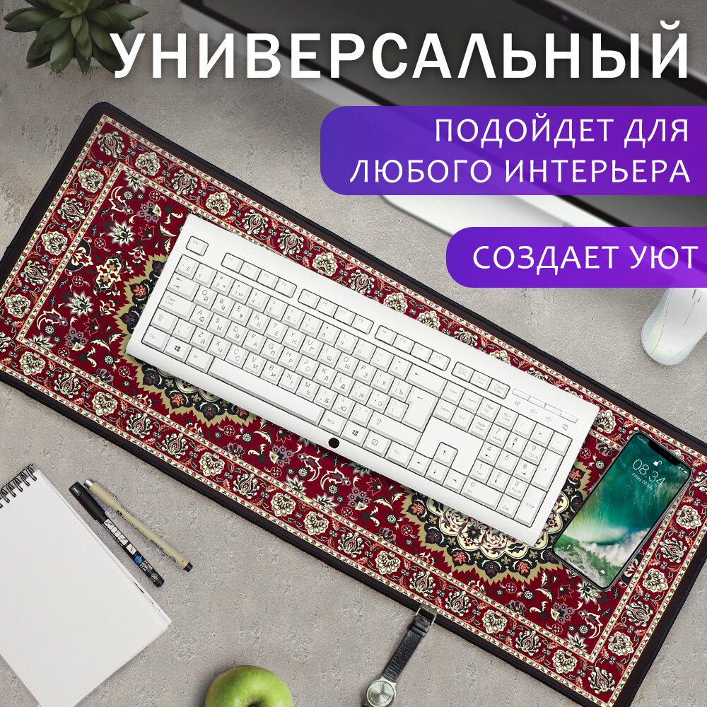 СохранитьКоврик компьютерный на стол для клавиатуры и мышки Персидский Ковер 800х300 мм, большой, бордовый, игровой, подарочный интересное: