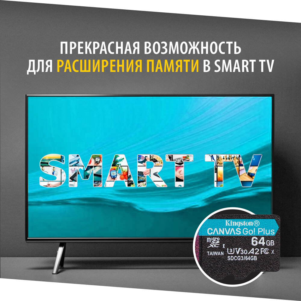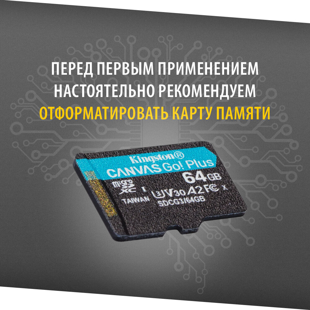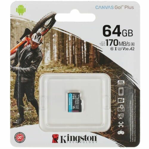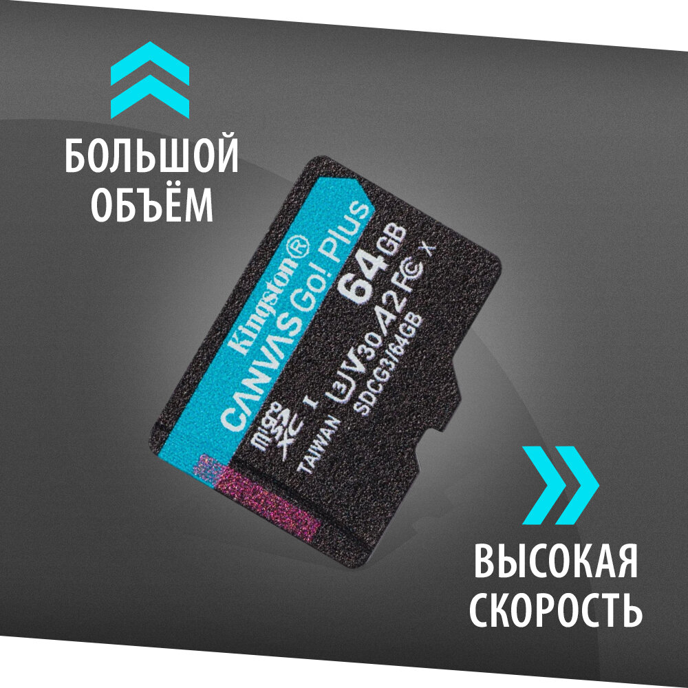 Карта памяти Kingston Canvas Go! Plus microSDXC UHS-I Cl10 +ад, SDCG3/64Gb, 1 шт.