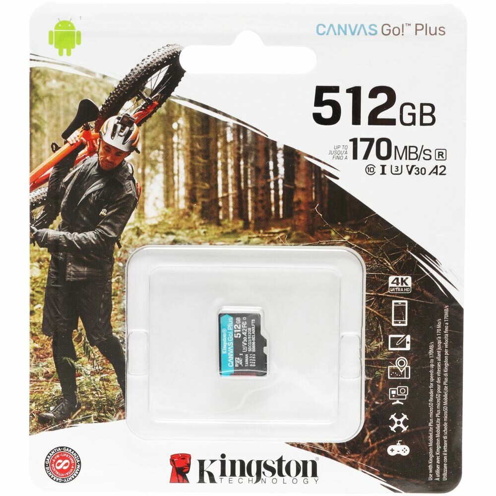 Карта памяти Kingston CANVAS Go! Plus - SDCG3/512GB - microSDXC UHS-I, U3, V30, A2 - 170/90МБ/с