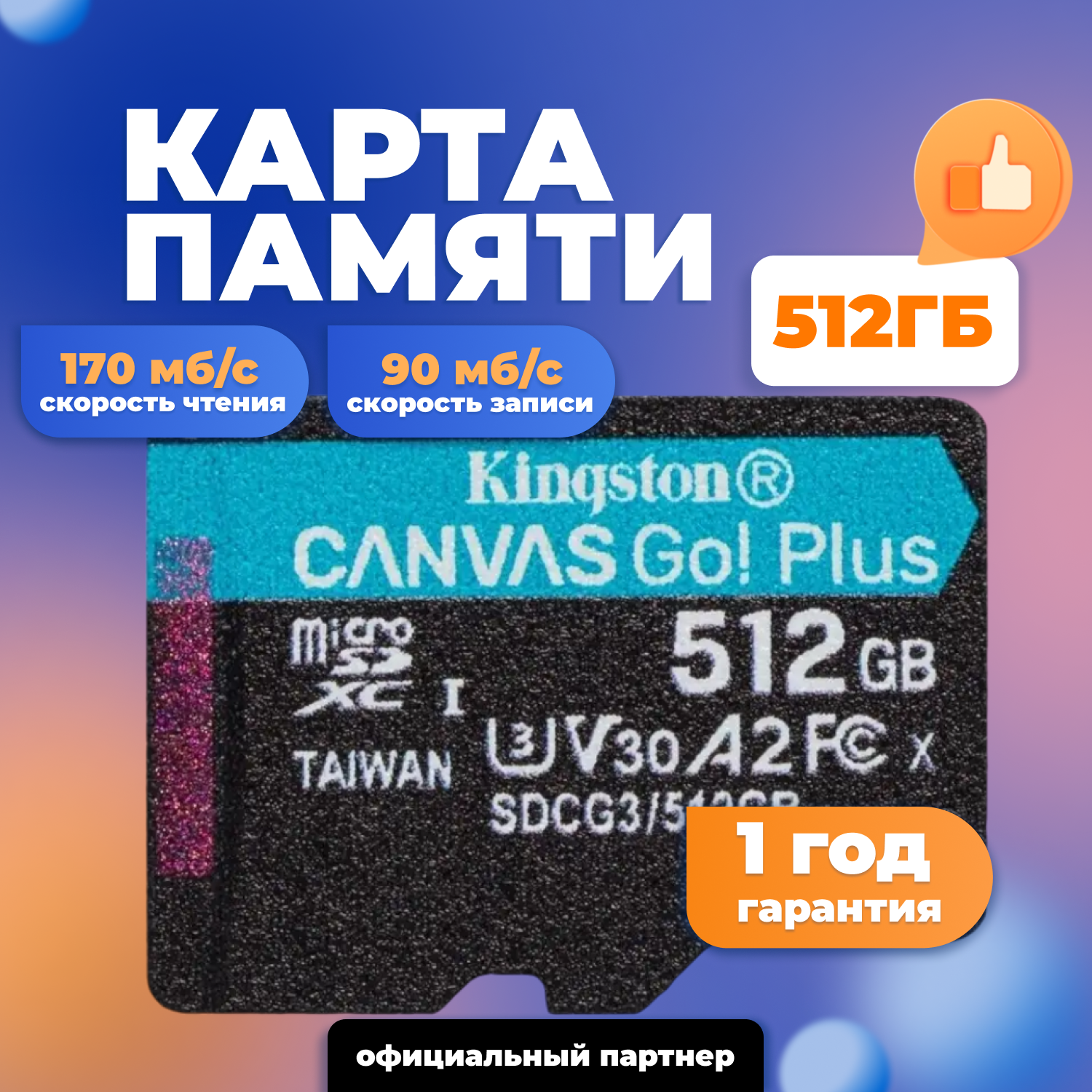 СохранитьФлеш карта microSD 512GB Kingston microSDXC Class 10 Uhs-i U3 V30 Canvas Go Plus 170MB/s Sdcg3/512gb . интересное: