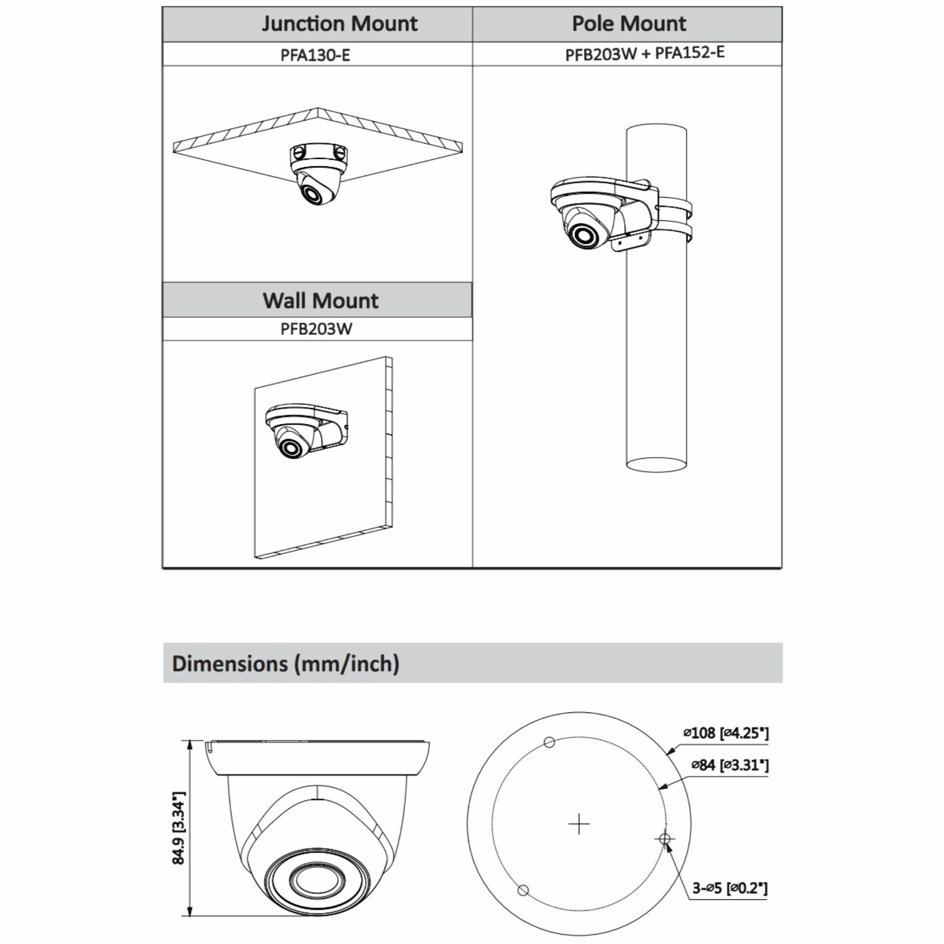 Dahua DH-IPC-HDW1230SP-0280B-S5 2Мп 2,8 мм - камера видеонаблюдения IP внутренняя и уличная, цифровая купольная IP-видеокамера для улицы и помещений с ИК-подсветкой, 1080P, CMOS 1/2.8"
