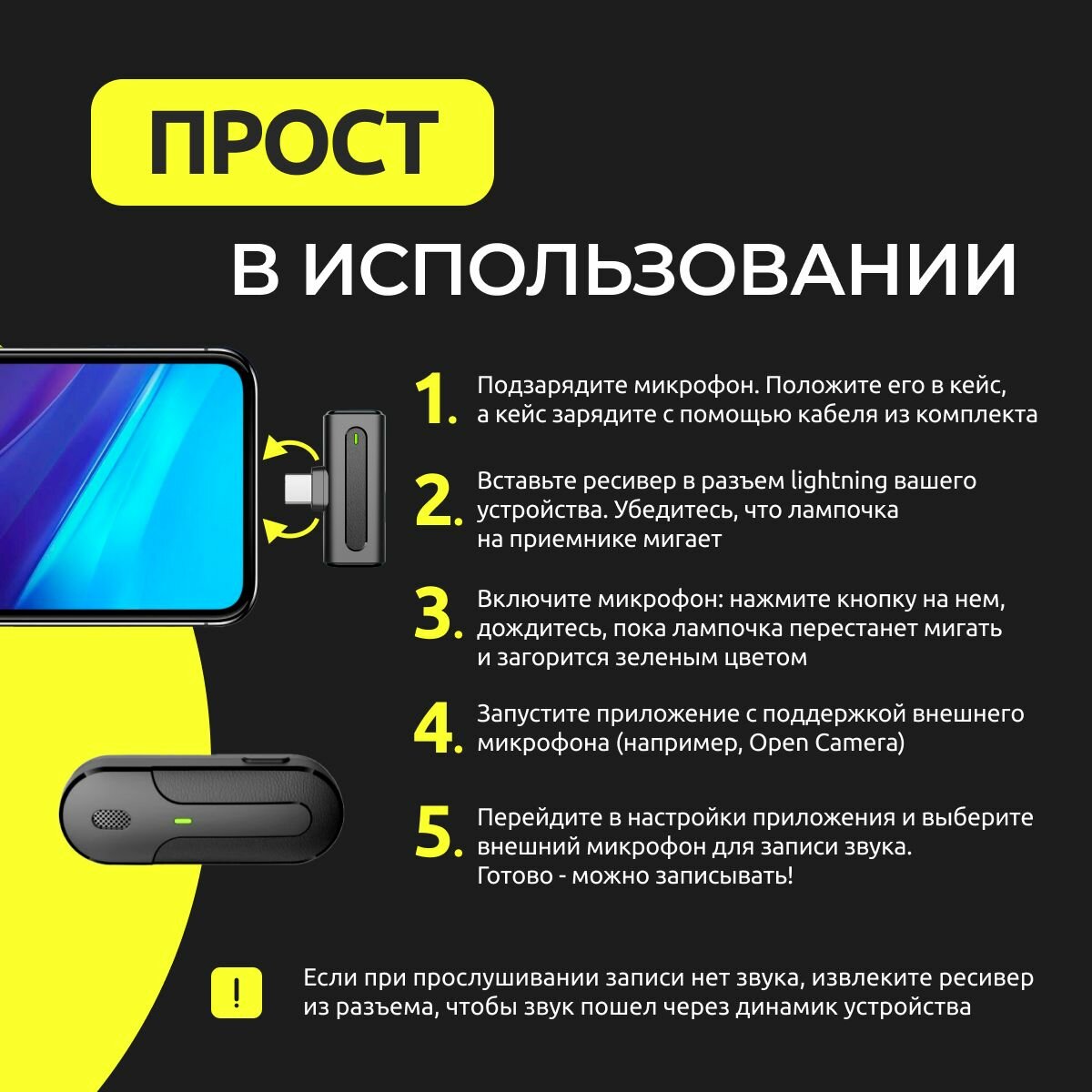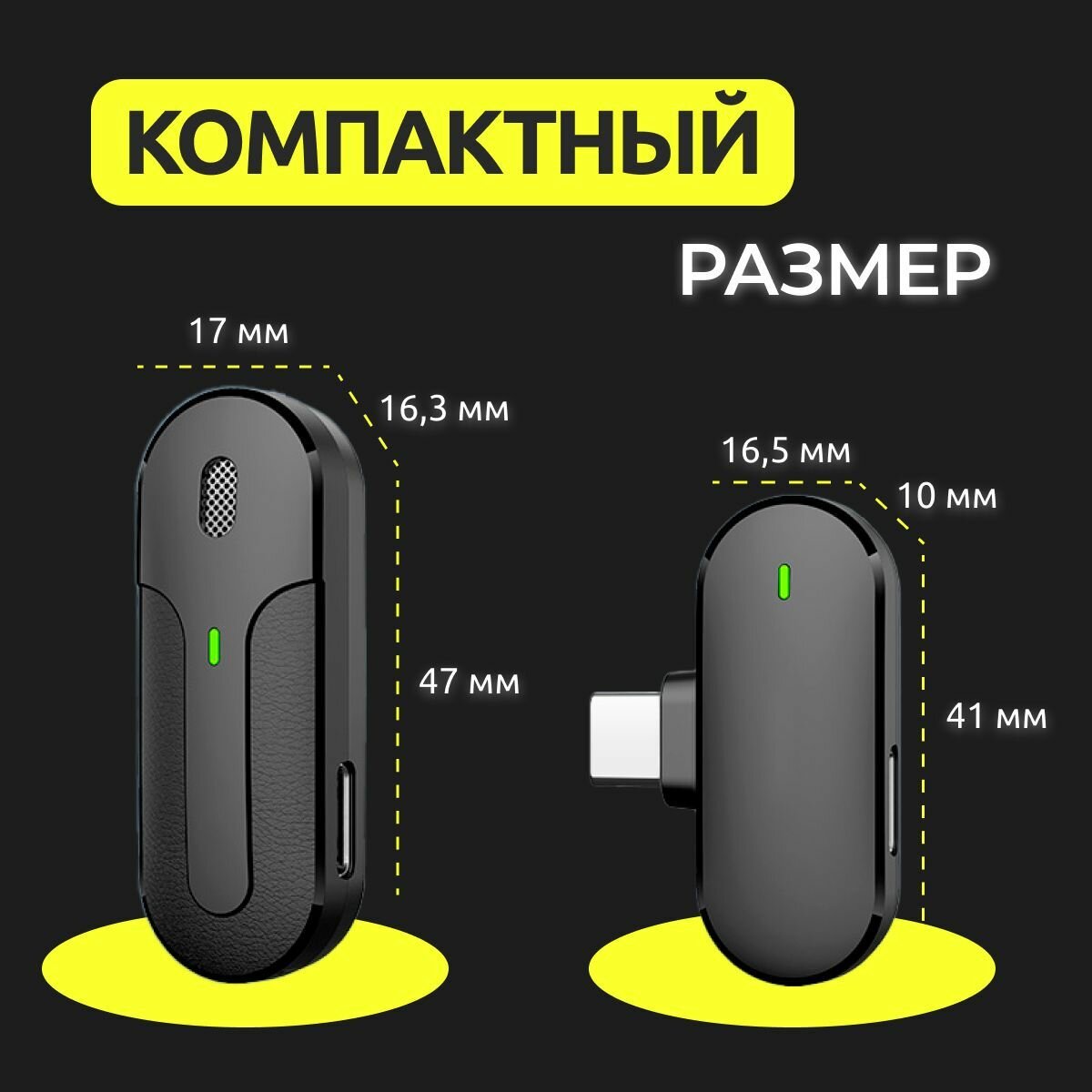 Микрофон петличный беспроводной, с шумоподавлением, петличка, для мобильного телефона, разъем Lightning, для Iphone, черный, 2шт