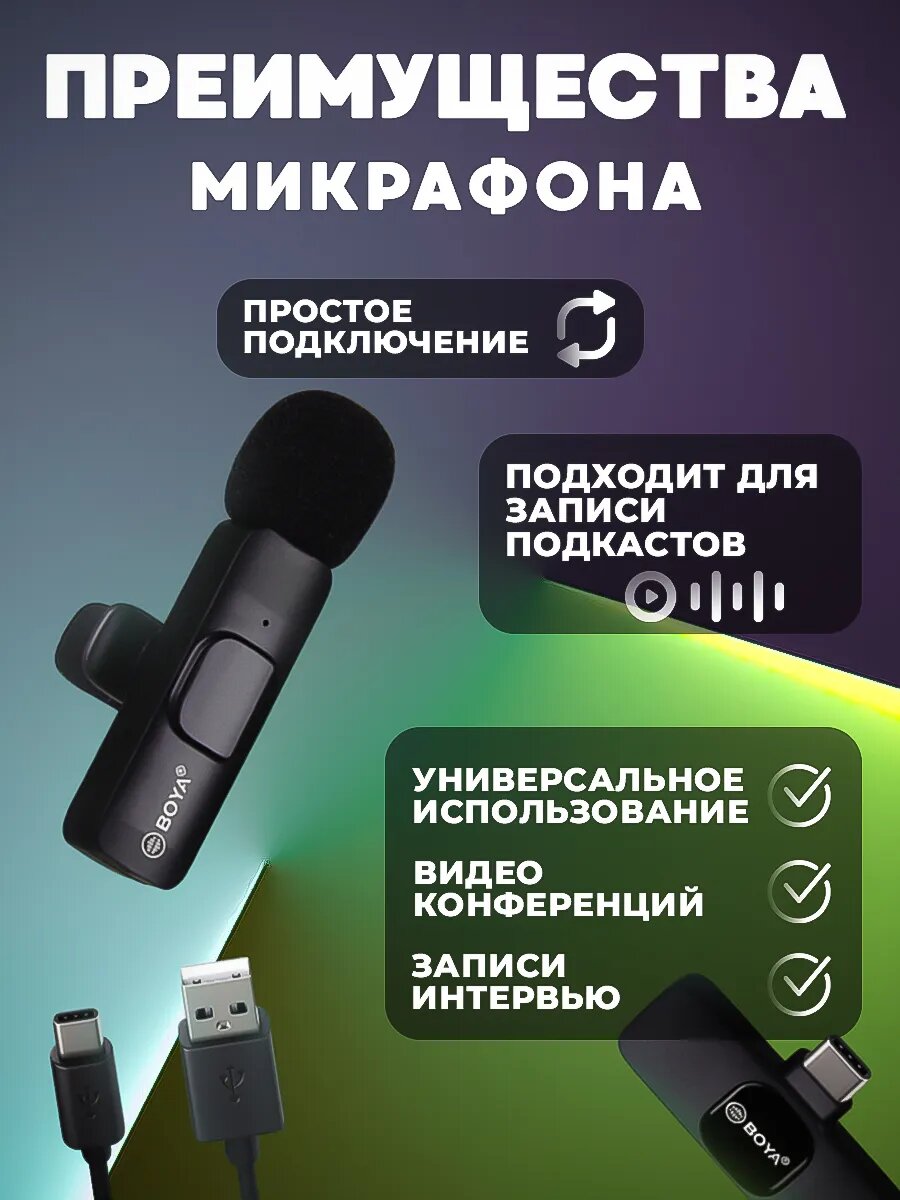 СохранитьМикрофон петличный беспроводной BOYA WM-1 Type-C интересное: