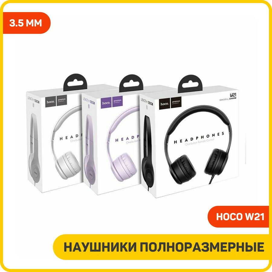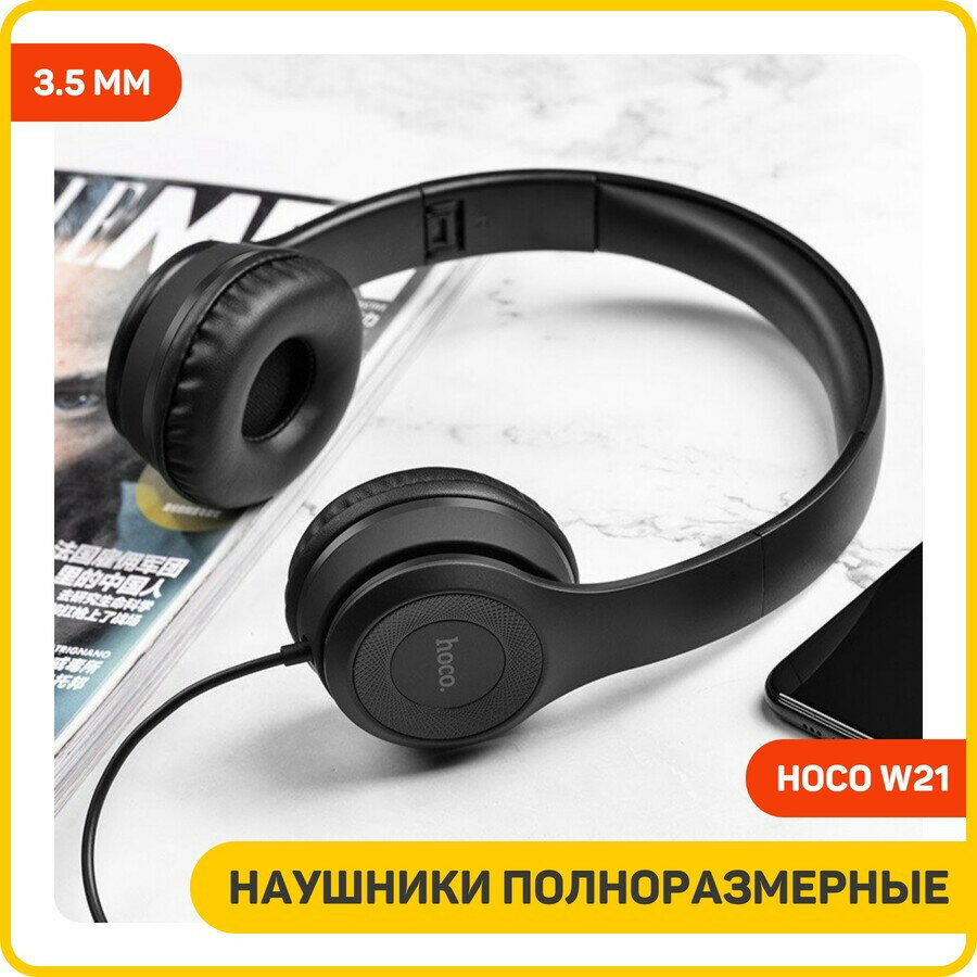 Наушники полноразмерные Hoco W21 (3.5 мм) черный