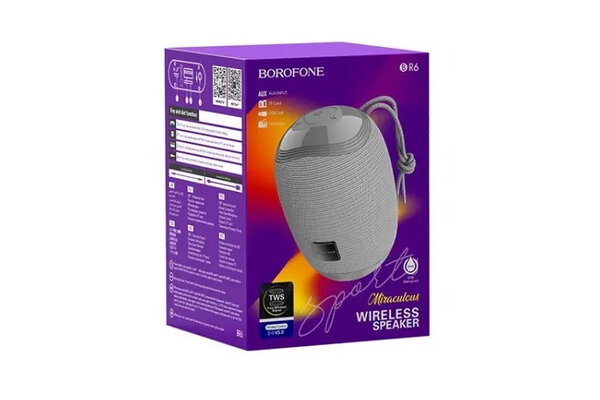 Портативная колонка Borofone BR6 Miraculous sports, серая, 1 шт.