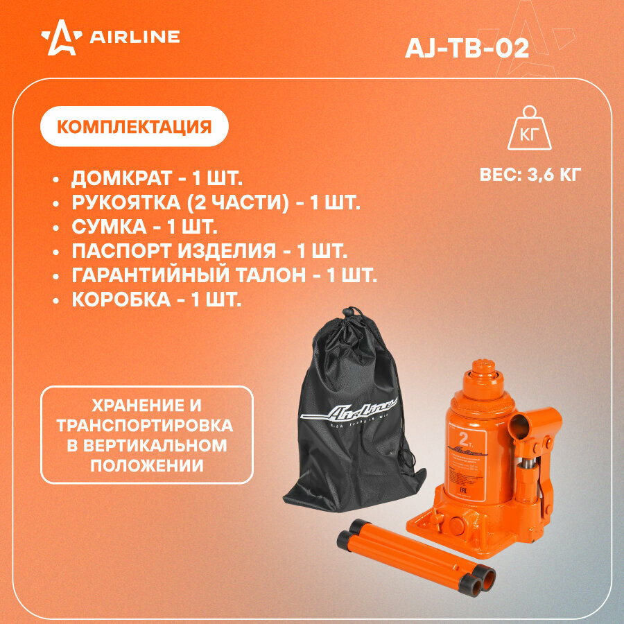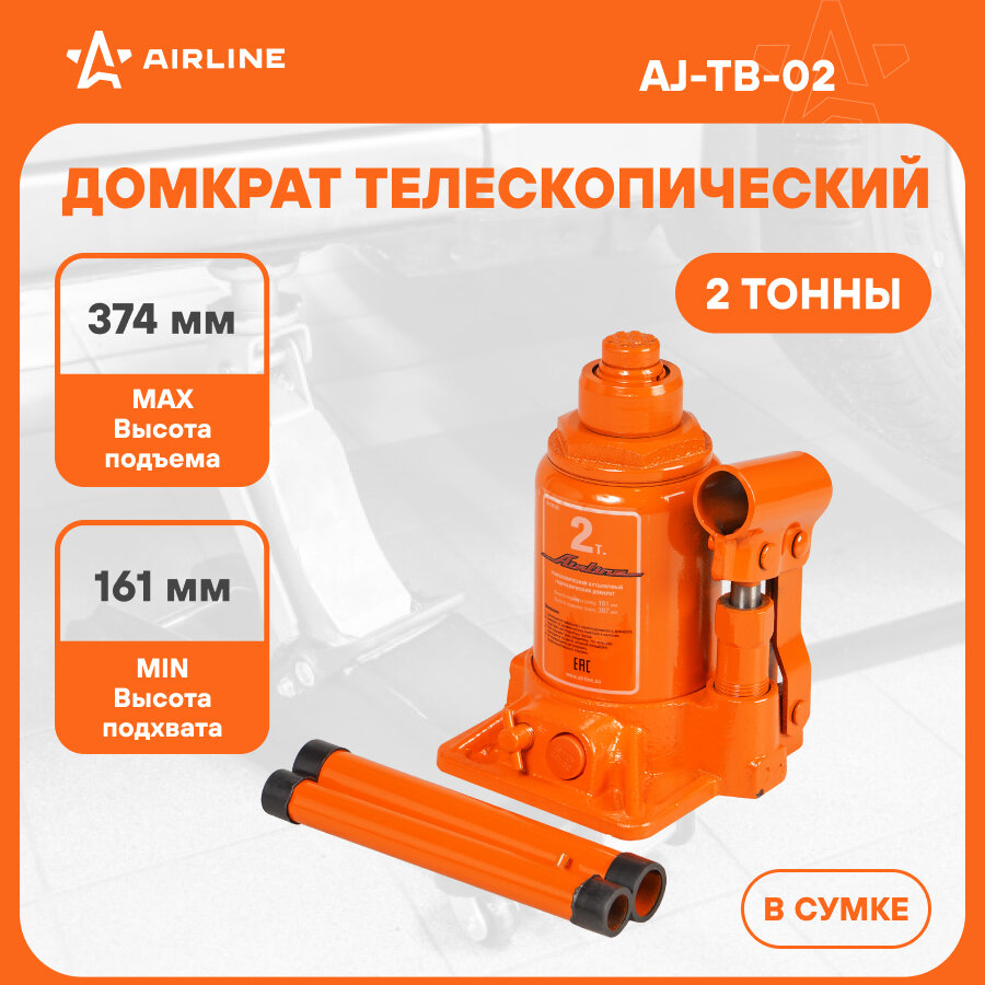 AIRLINE AJ-TB-02 Домкрат телескопич. 2т в сумке (MIN - 161 мм MAX - 387 мм) (AJ-TB-02)