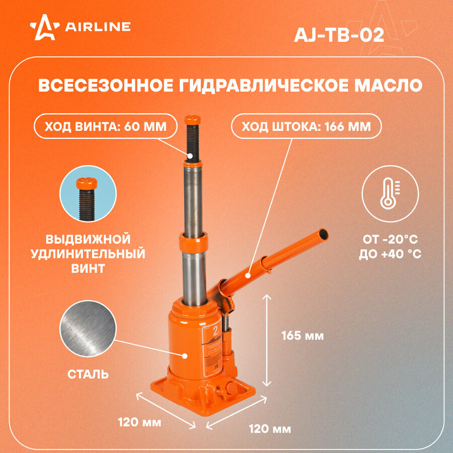 Домкрат бутылочный гидравлический AIRLINE AJ-TB-02 (2 т) оранжевый