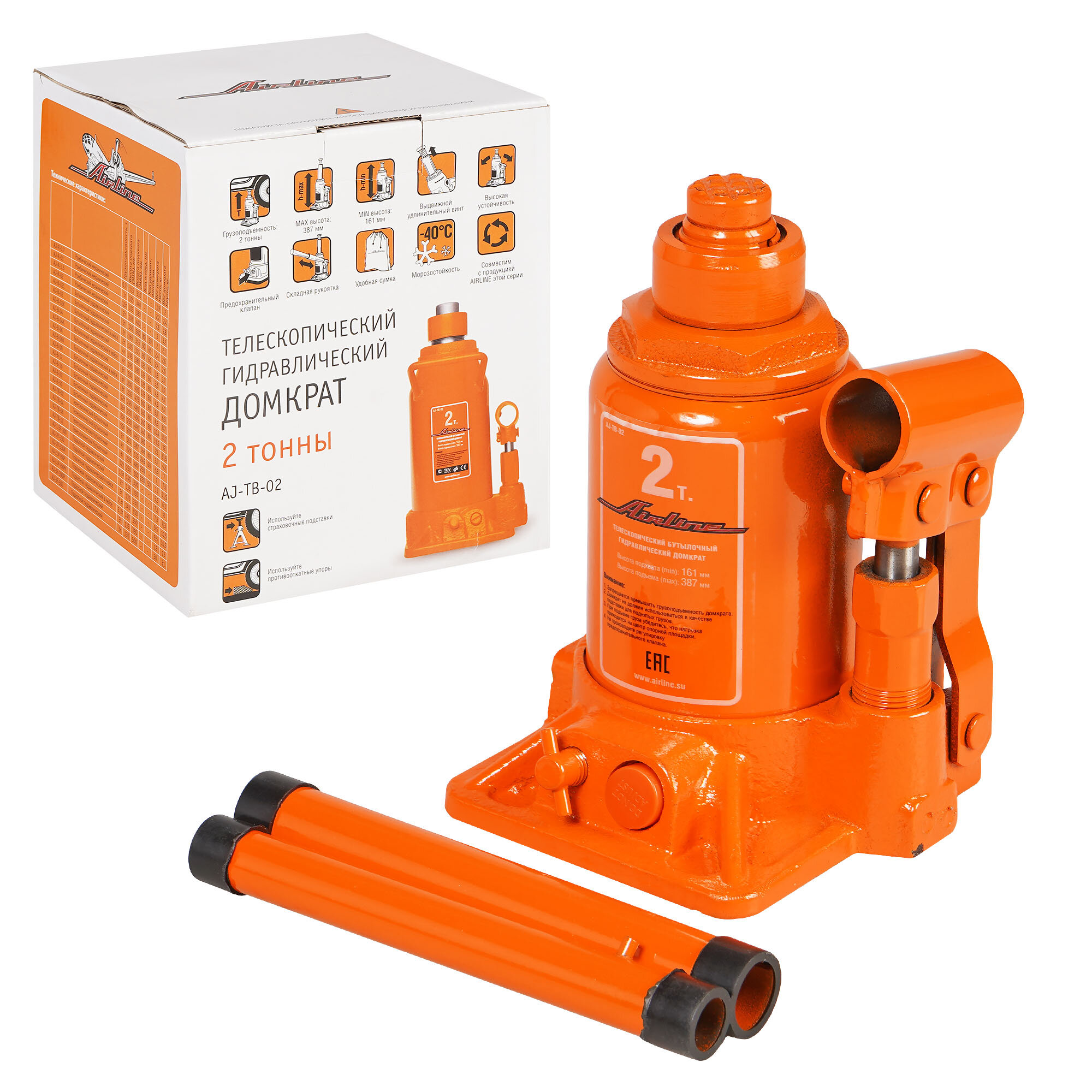 AIRLINE AJ-TB-02 Домкрат телескопич. 2т в сумке (MIN - 161 мм, MAX - 387 мм) (AJ-TB-02) 1шт