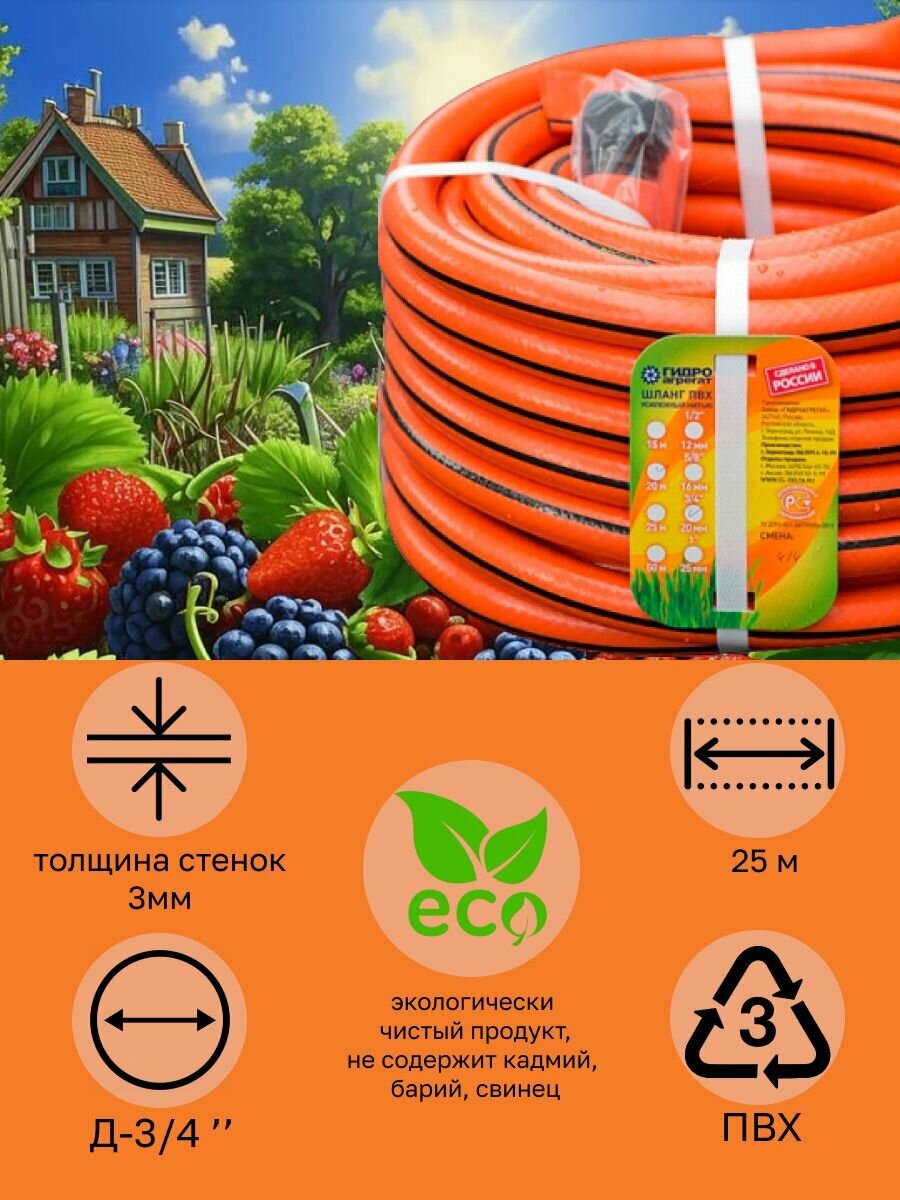 Шланг поливочный, диаметр 20мм, длинна 25 м, Гидроагрегат оранжевый с полосой. интересное: