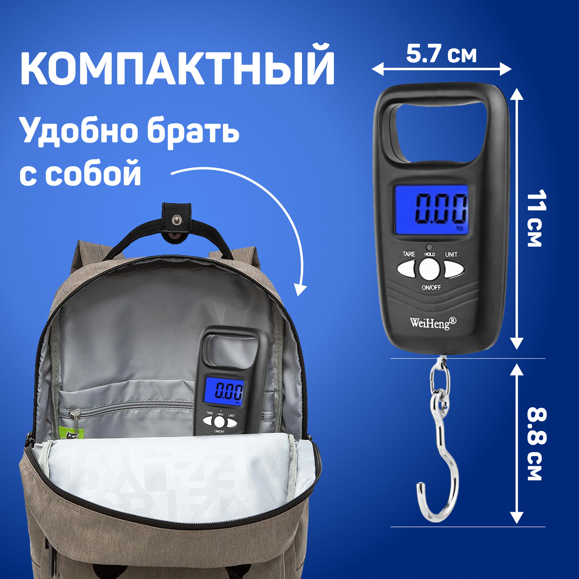 Весы багажные, безмен электронный WH-A17 до 50 кг, цвет - черный