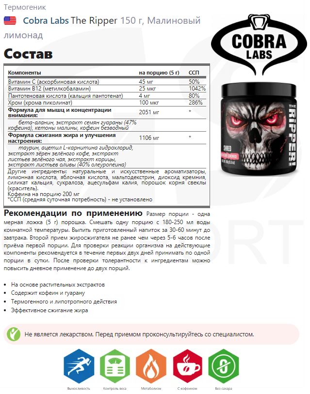 СохранитьЖиросжигатель Cobra The Ripper! (150 г) Малиновый лимонад интересное: