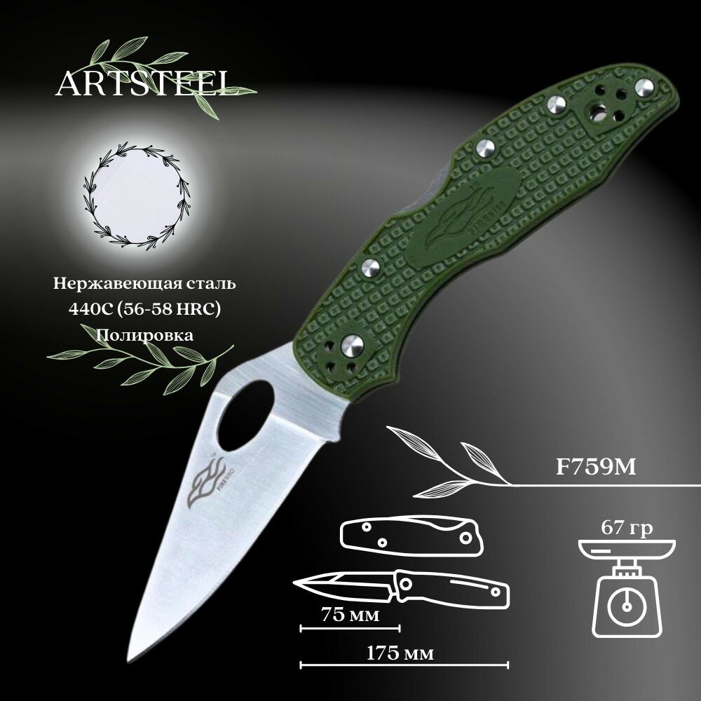 F759M-GR Нож складной "Firebird by Ganzo" с клипсой, дл.клинка 75 мм, сталь 440С, цв. зелёный.Следопыт