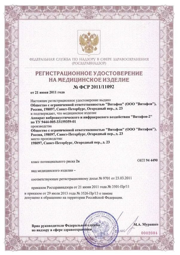 Аппарат виброакустического и инфракрасного воздействия "Витафон-2" (стандартная комплектация)