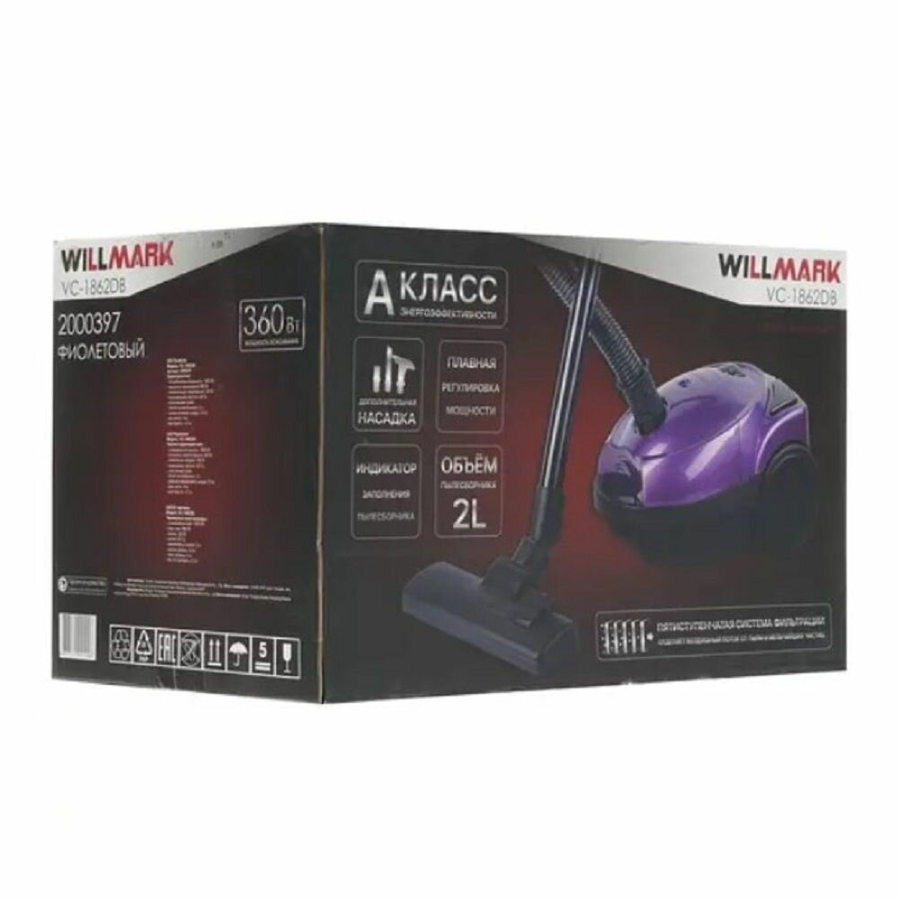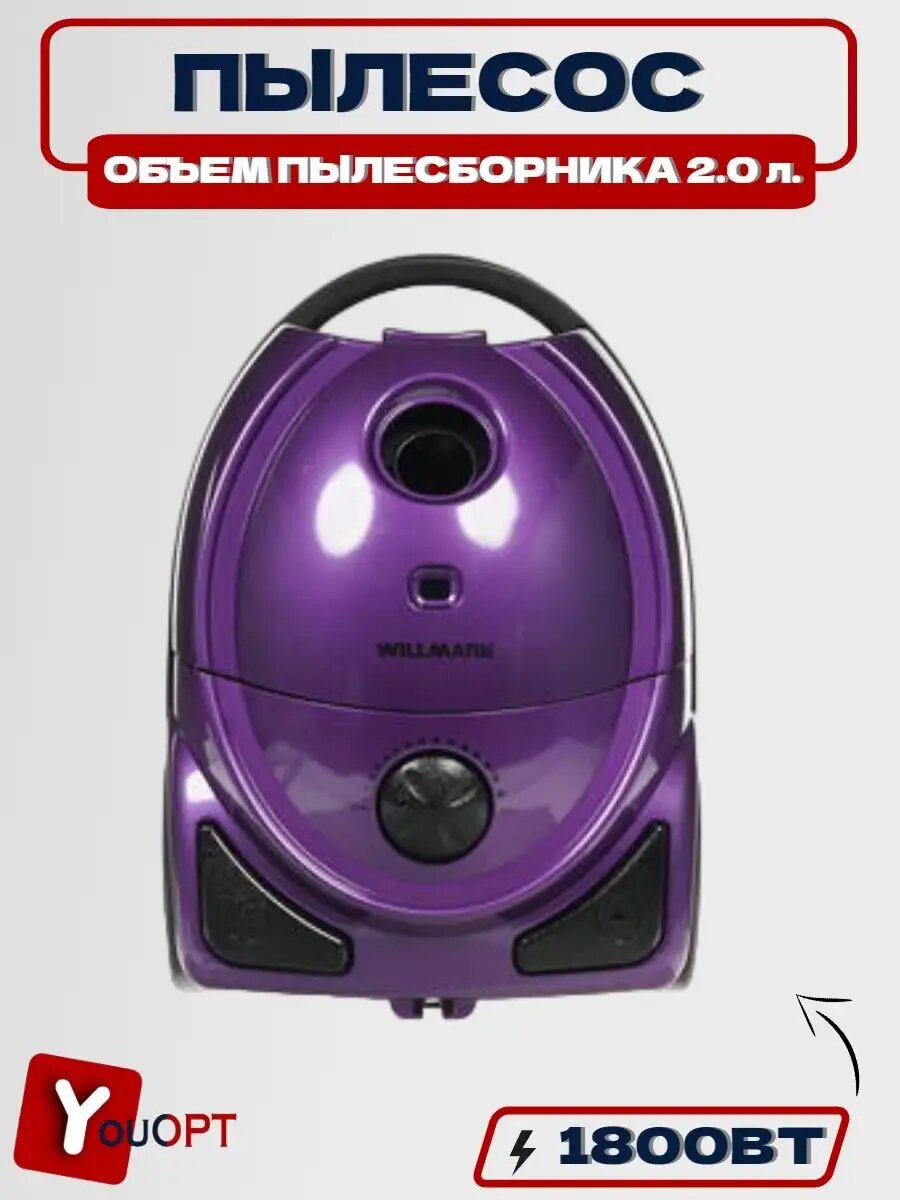 Пылесос с мешком WILLMARK VC-1862DB /фиолетовый, 1800Вт, 360Вт