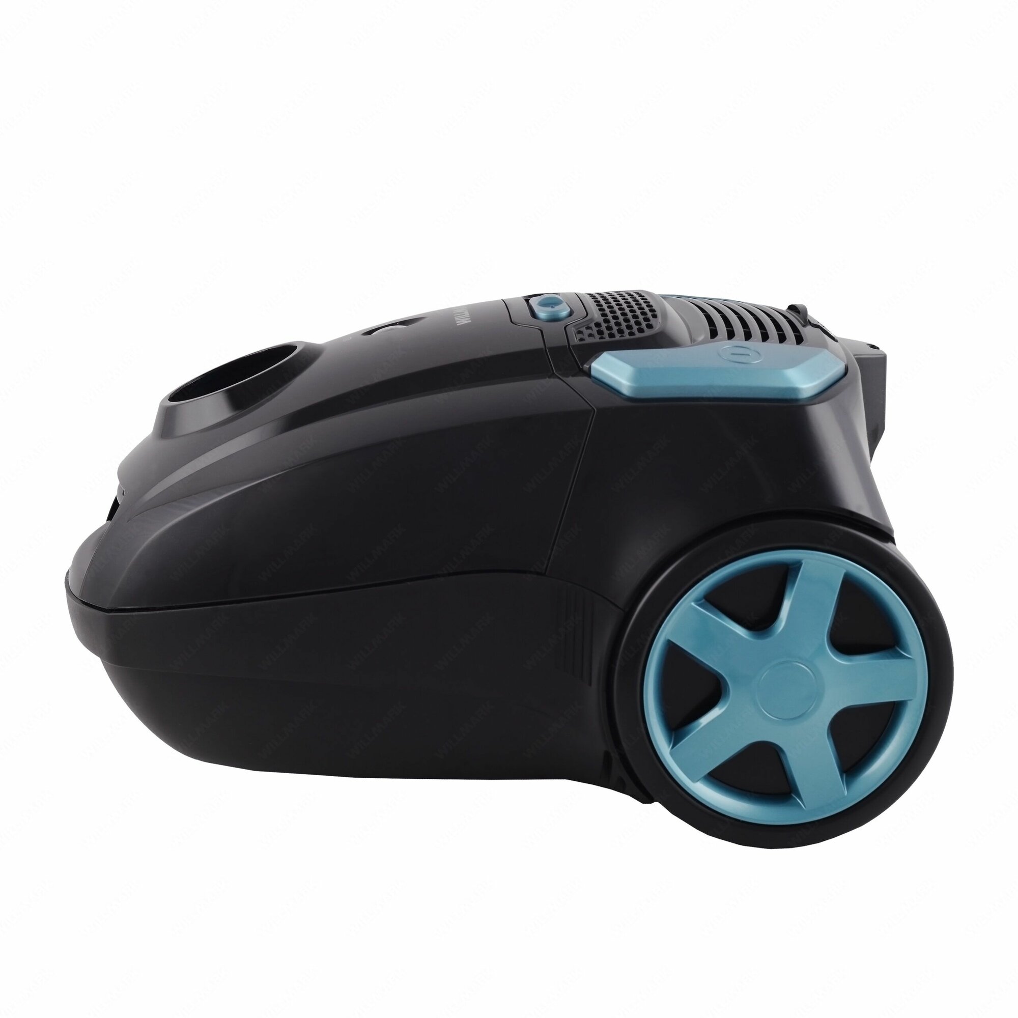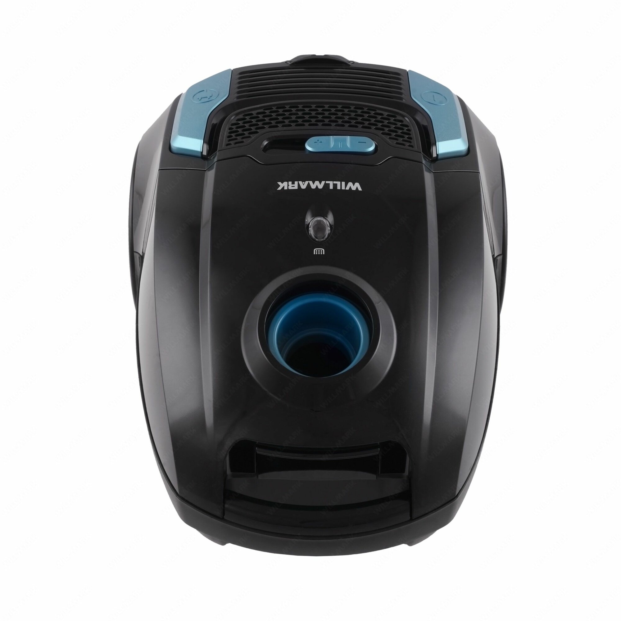 Купить Пылесос для дома Willmark VC-2650DBM, 2000Вт, с фильтром тонкой очистки, мешком 3 л, индикатором заполнения пылесборника, черный/голубой