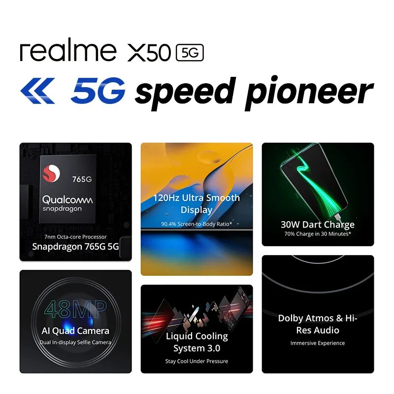 Купить Смартфон Realme X50 5G, 6/128ГБ, global, Realme, X50 5G, Глобальная версия, Смартфон, Зеленый, 6GB, 128GB, global, новый, 01.01.2020