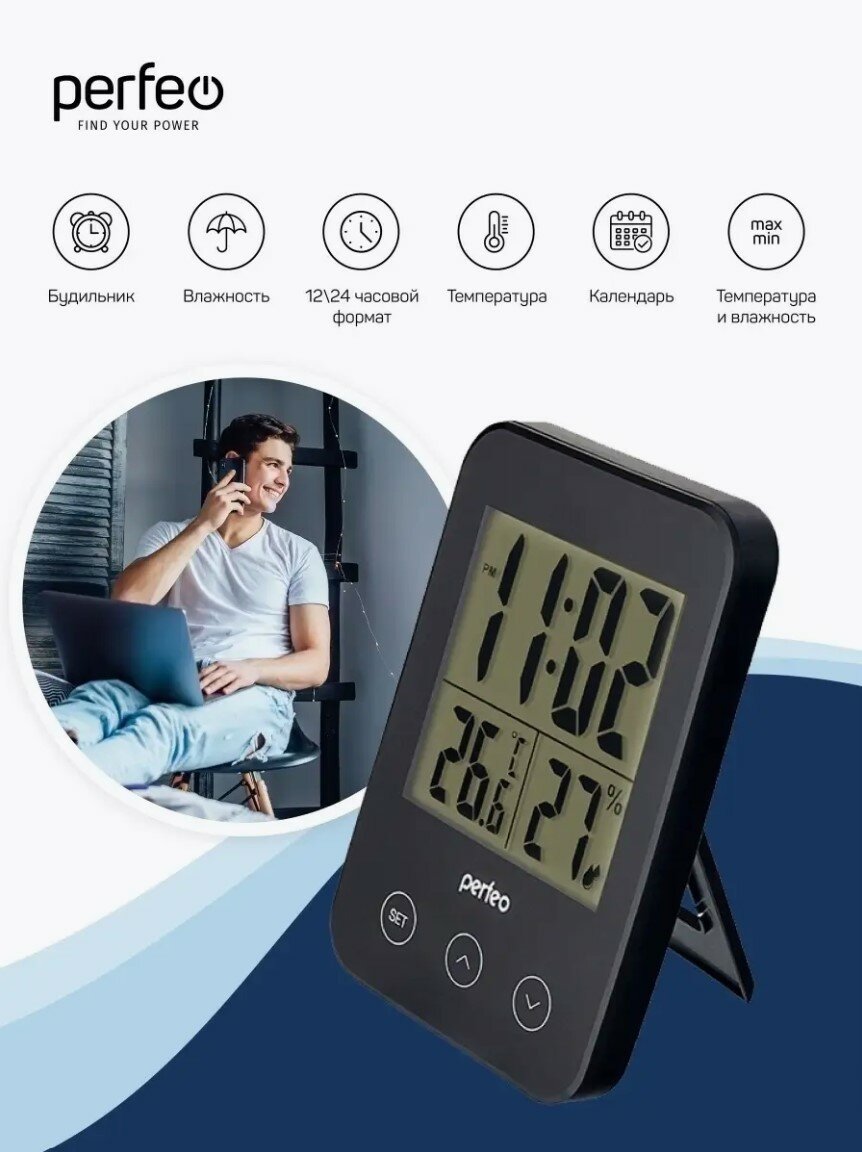 Perfeo Часы-метеостанция "Touch", чёрный, (pf-s681) время, температура, влажность PF-S681 .