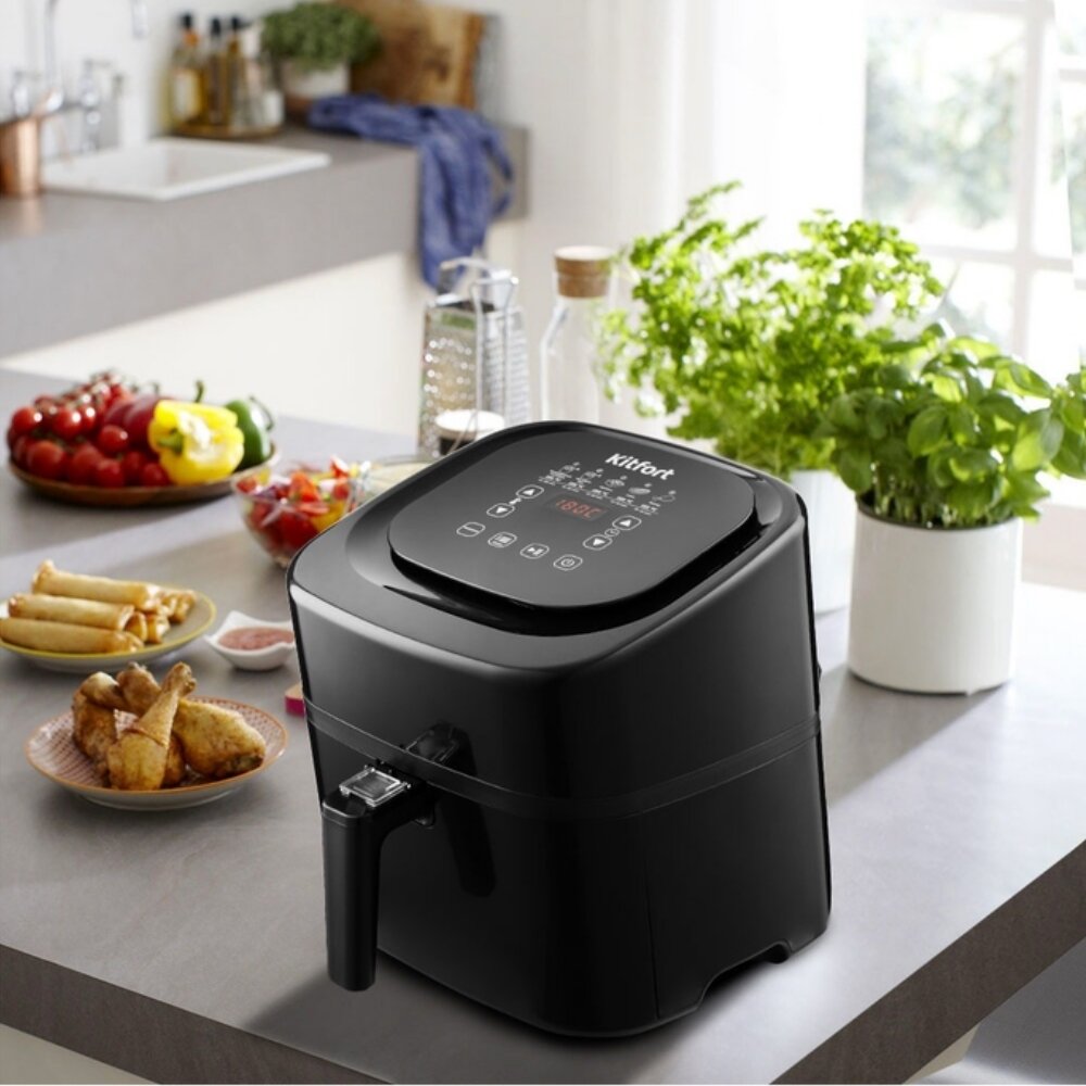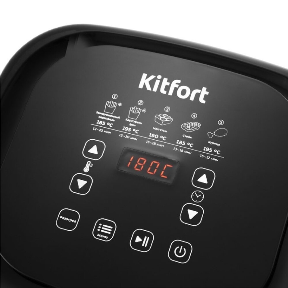 СохранитьАэрогриль Kitfort KT-2215, 1500 Вт, емкость корзины 4,5 л, 5 программ, плавная регулировка температуры, цвет черный интересное: