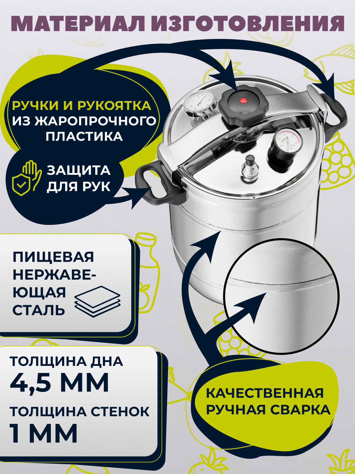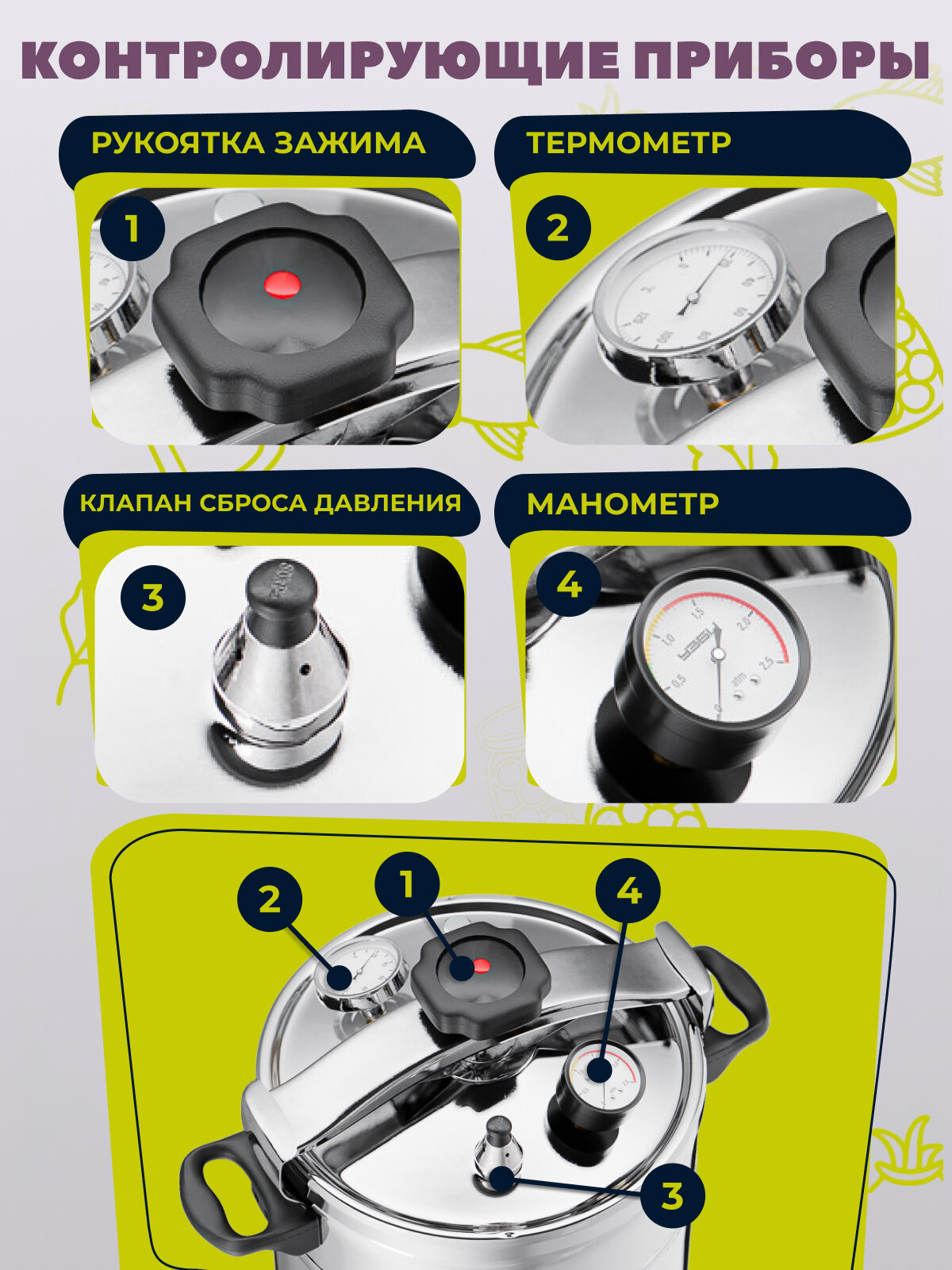 Автоклав-стерилизатор "Охотник-рыболов" 14л, нержавеющая сталь, манометр, термометр, клапан сброса избыточного давления / прочая техника
