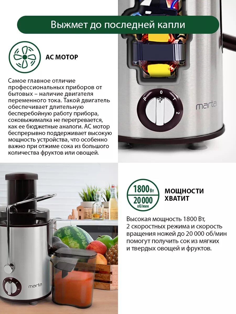 СохранитьСоковыжималка электрическая MARTA MT-2048серыйжемчуг интересное: