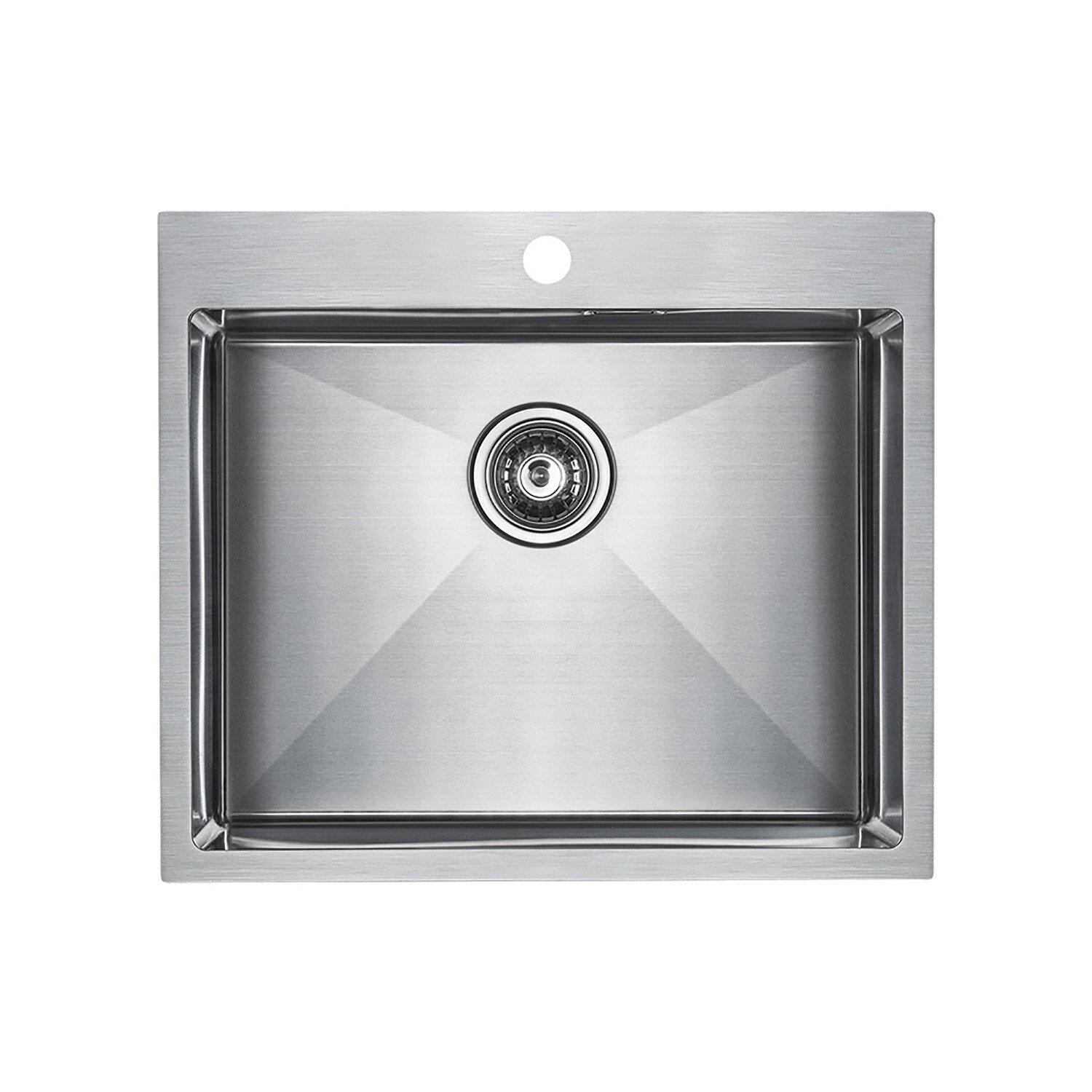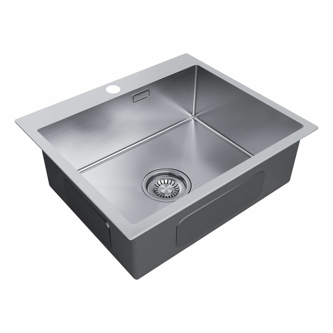 Мойка для кухни из нержавеющей стали AISI304 Paulmark VELTEN 59, 590х510 мм, шумопоглащающее покрытие, отверстие под смеситель, универсальный монтаж, цвет брашированная сталь