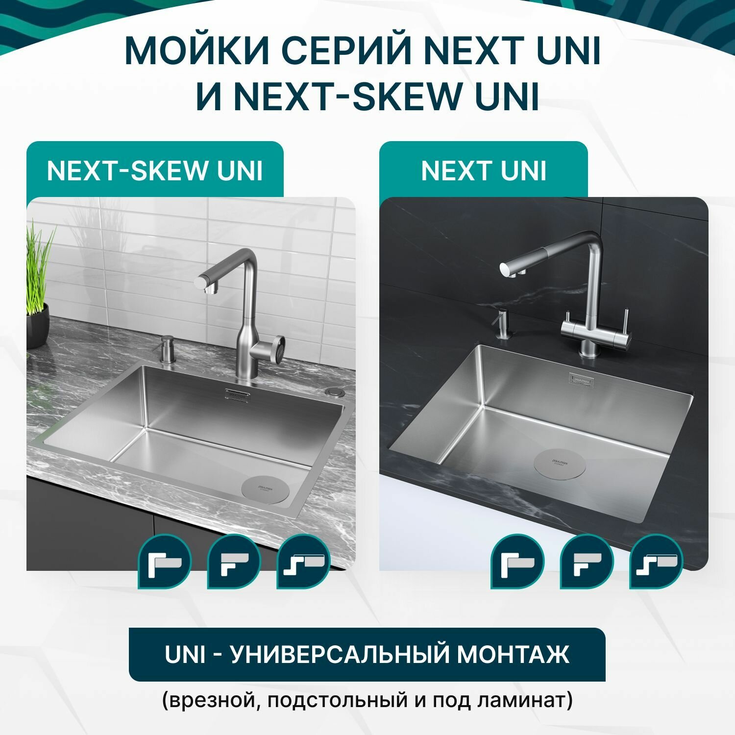 Мойка для кухни из нержавеющей стали Paulmark NEXT 74 UNI, 740х440 мм, PVD и шумопоглащающее покрытие,, врезная, подстольная и вровень со столешницей, цвет матовый серый, сифон в комплекте